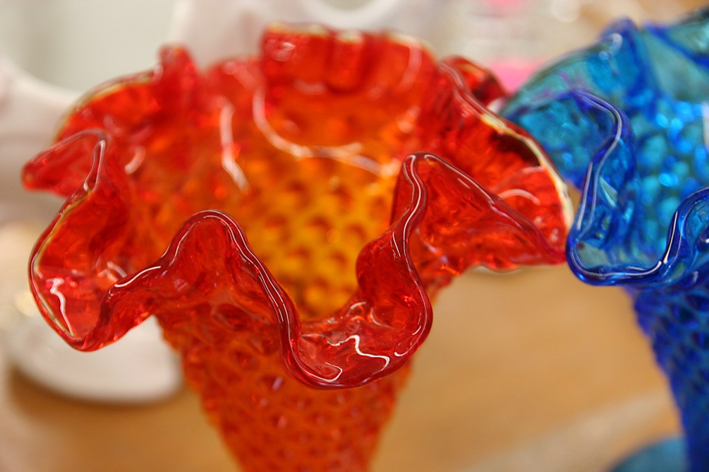 Inside Used-A-Bit Shoppe, glassware in a seasonal hue. (Minnesota Prairie Roots copyrighted photo September 2022)