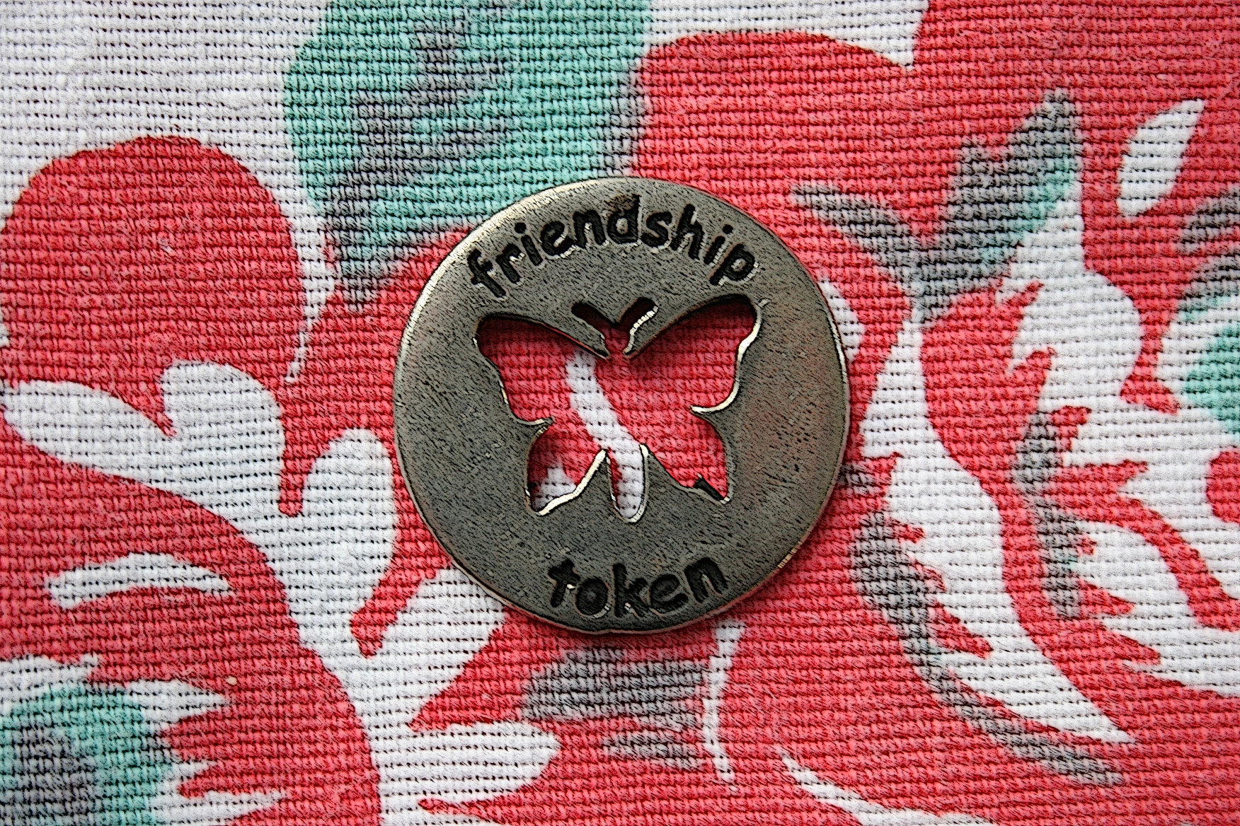 I may not carry a friendship token in my pocket. But I understand its symbolism, its importance. I hope whoever lost or tossed that metal circle into my yard has reclaimed her friendship or realized the friendship was not worth continuing. Sometimes that’s the hard truth, too, that not all individuals should remain our friends. Sometimes the friendship token needs to be tossed into a stranger’s yard, left behind so we can move forward.