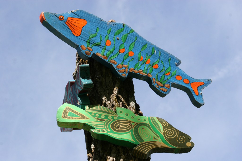 Community members designed and painted the individual fish for this project. (Minnesota Prairie Roots copyrighted photo September 2022)