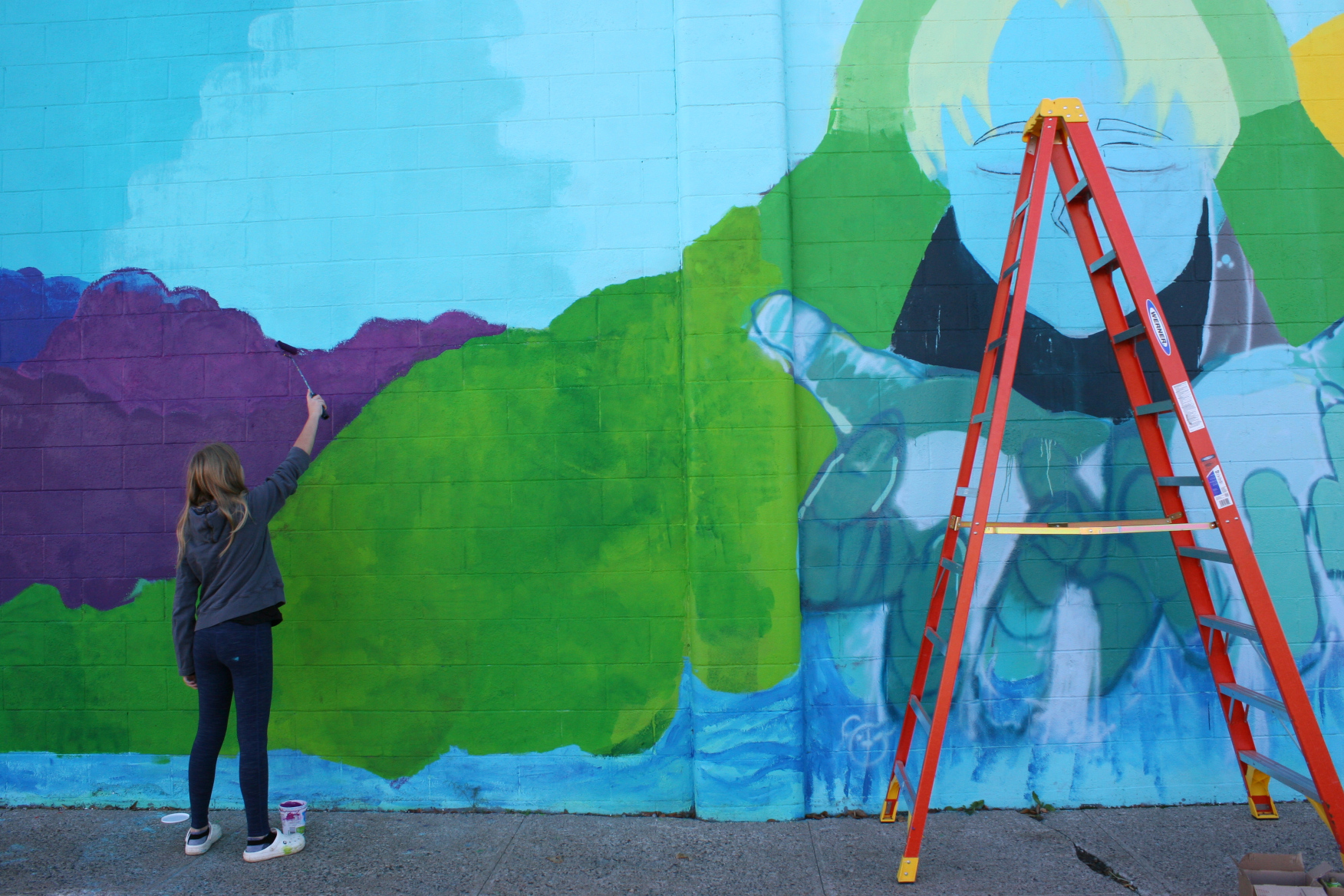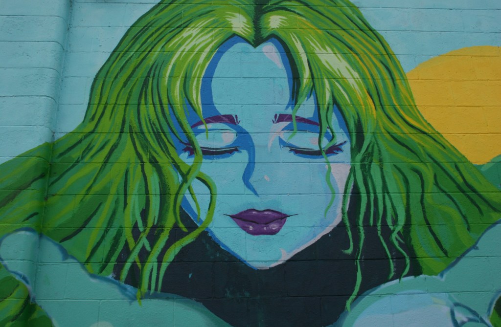 Mother Earth in progress on the Just Food Co-op mural. (Minnesota Prairie Roots copyrighted photo August 2022)