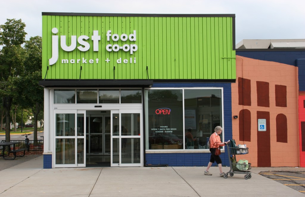 Outside Just Food Co-op. (Minnesota Prairie Roots copyrighted photo September 2022)