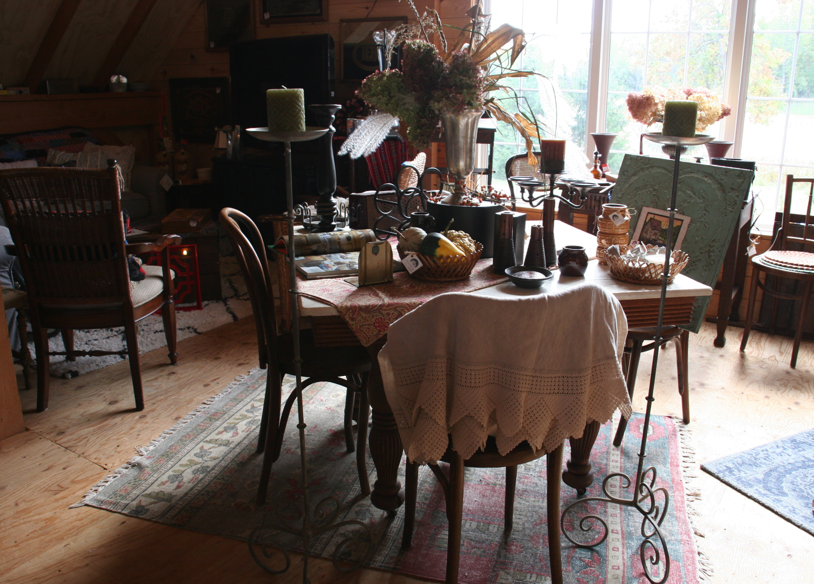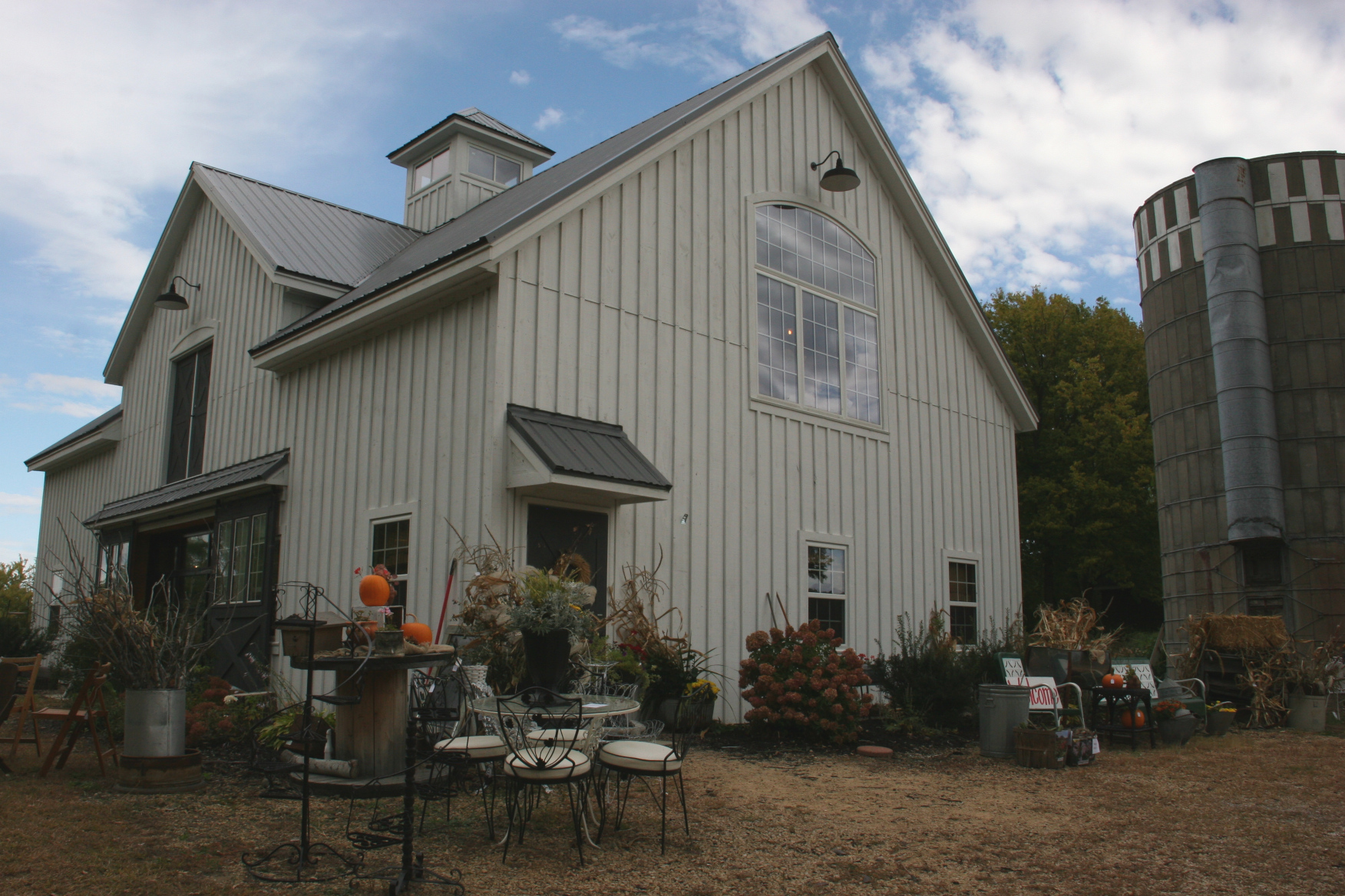 Even before I opened the barn door adorned with a simple, seasonal wheat wreath, I felt welcomed, interested, impressed. An array of tables, chairs, flowers and other items outside hint at what’s inside.