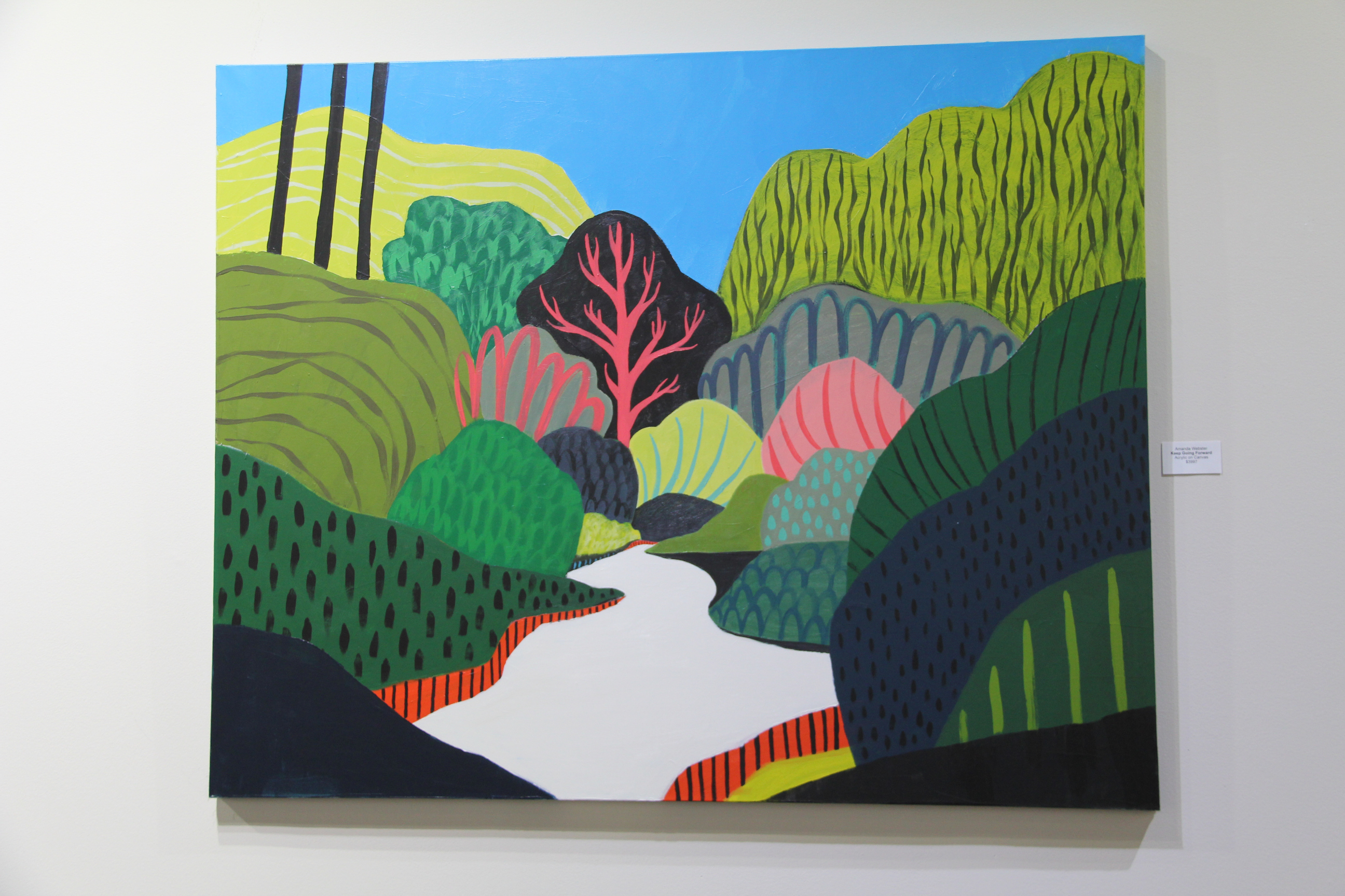 The winding white path leads the eye right into Amanda Webster’s vivid acrylic on canvas abstract, “Keep Going Forward.” (Minnesota Prairie Roots copyrighted photo March 2023)