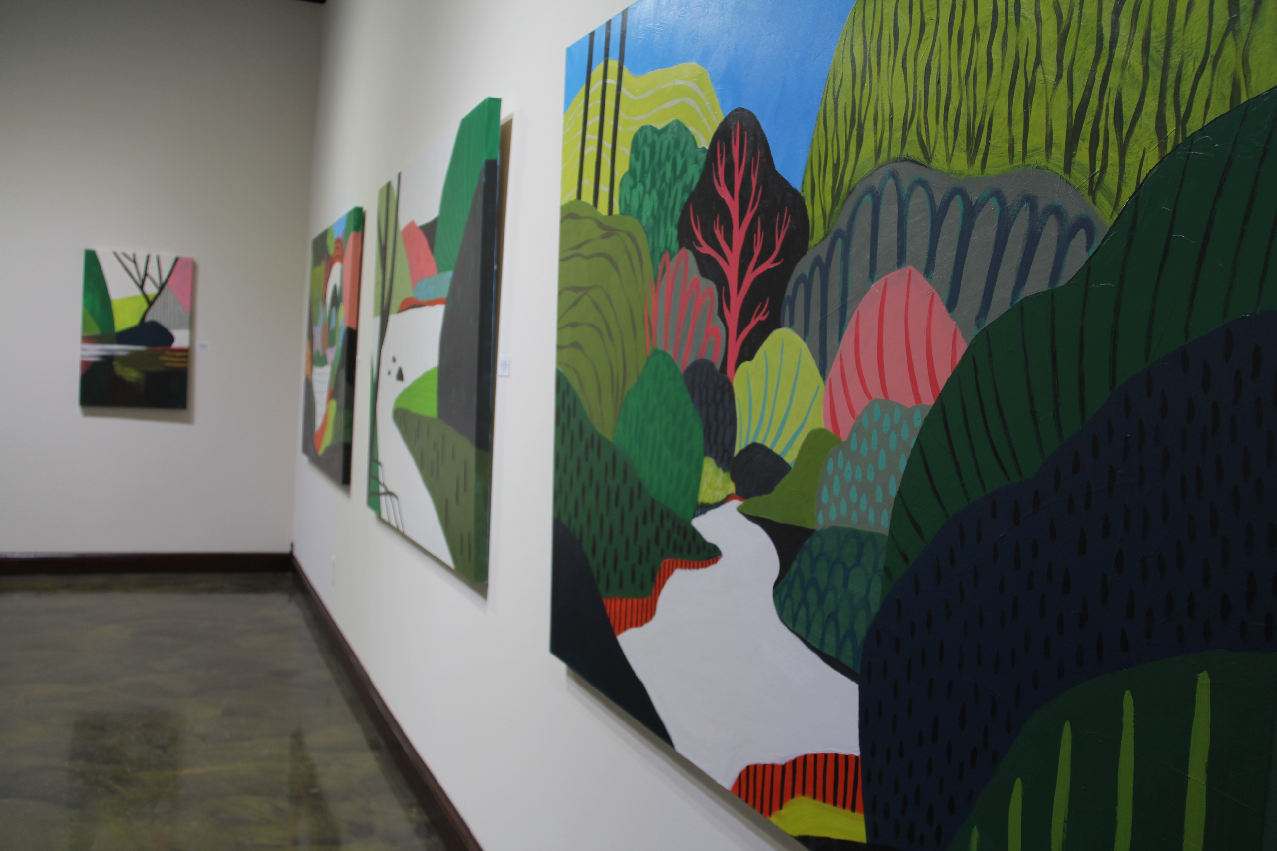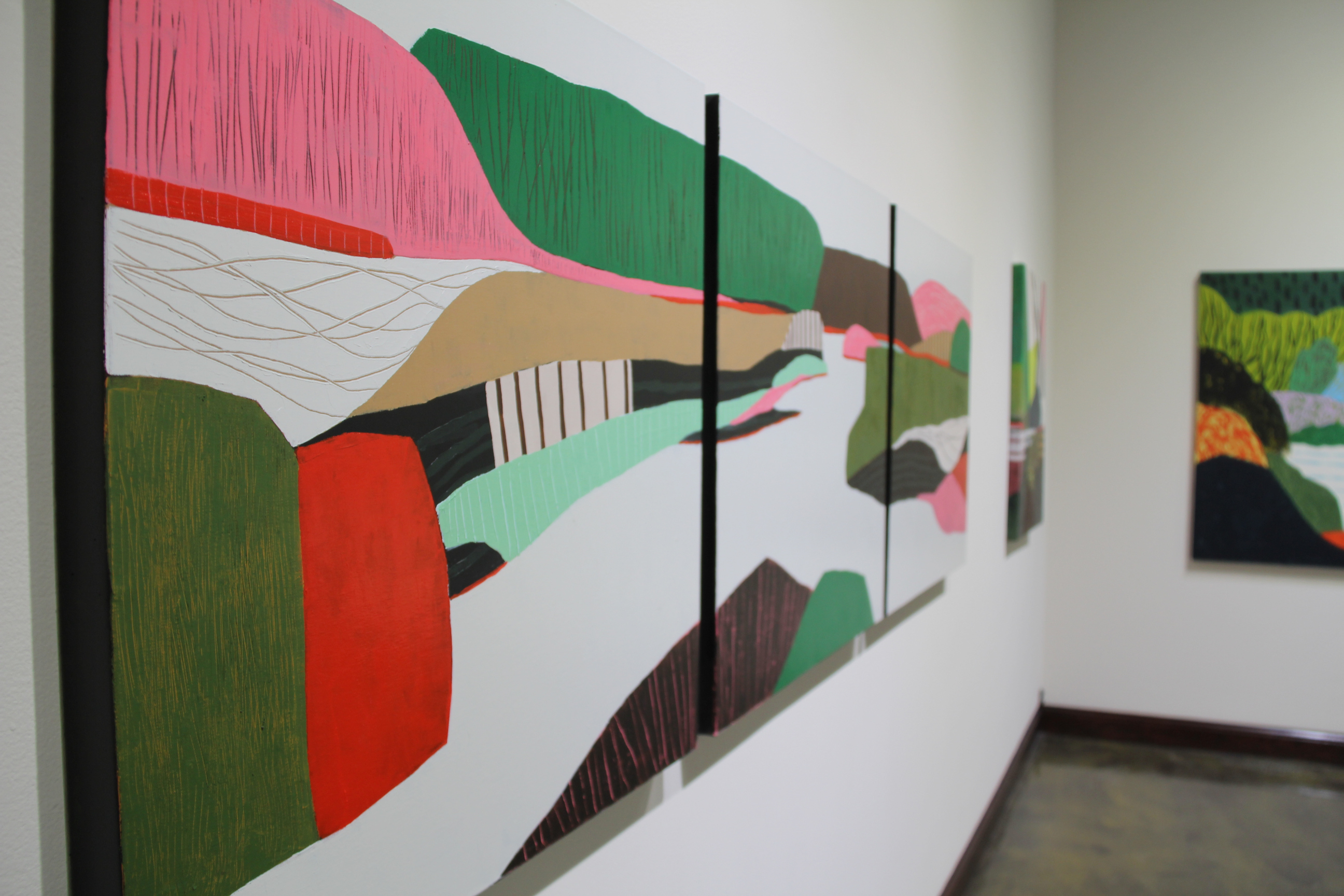 When I stepped inside the main gallery at the Paradise to view the bold acrylic paintings of Twin Cities artist Amanda Webster, I simply stopped. Wow! Her large-scale colorful abstracts jolted me into a happy place.