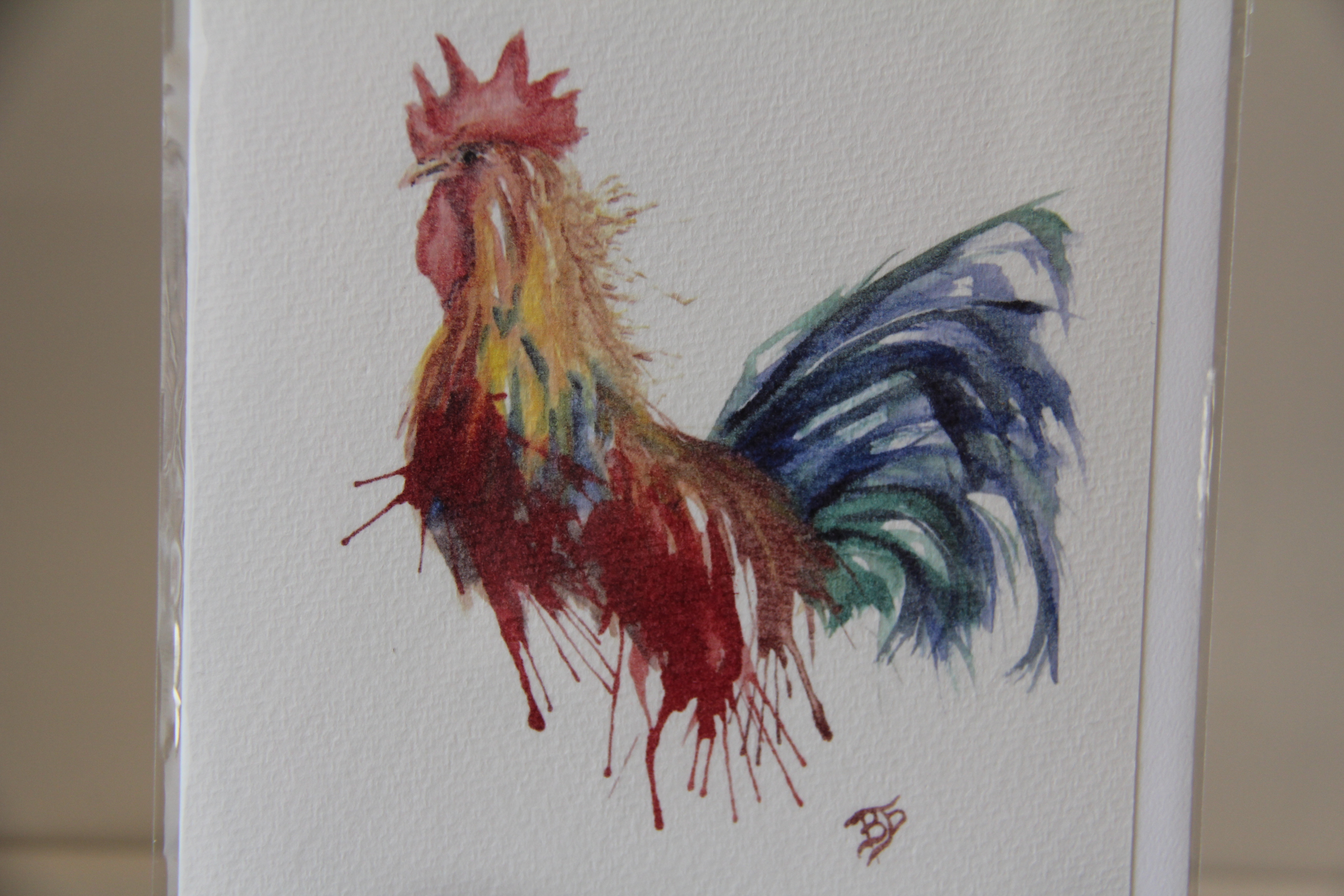 Barb Pendergast created this watercolor of a rooster. (Minnesota Prairie Roots copyrighted photo March 2023)