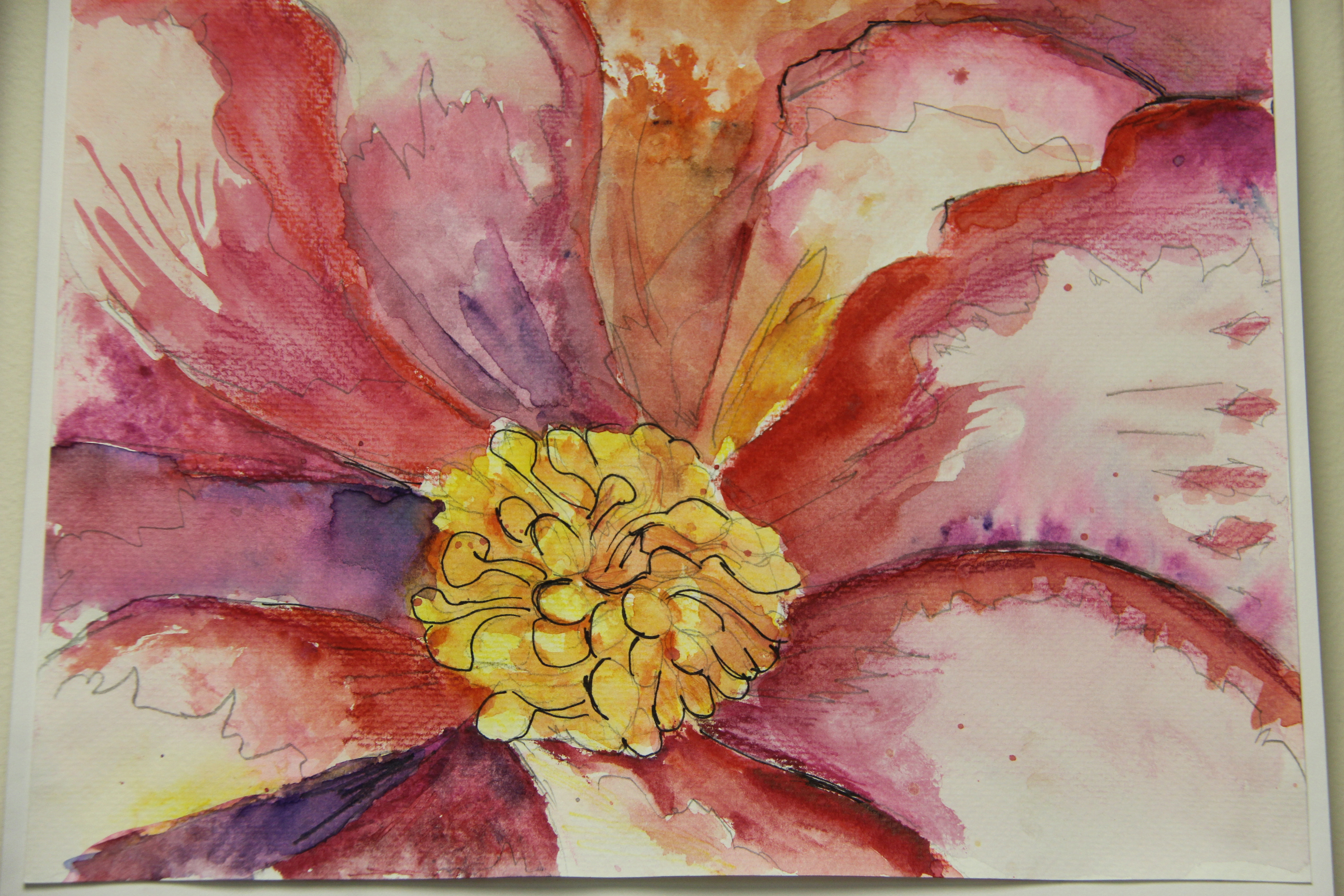 A watercolor flower by Alaina, 8th grade, Faribault Middle School. (Minnesota Prairie Roots copyrighted photo March 2023)