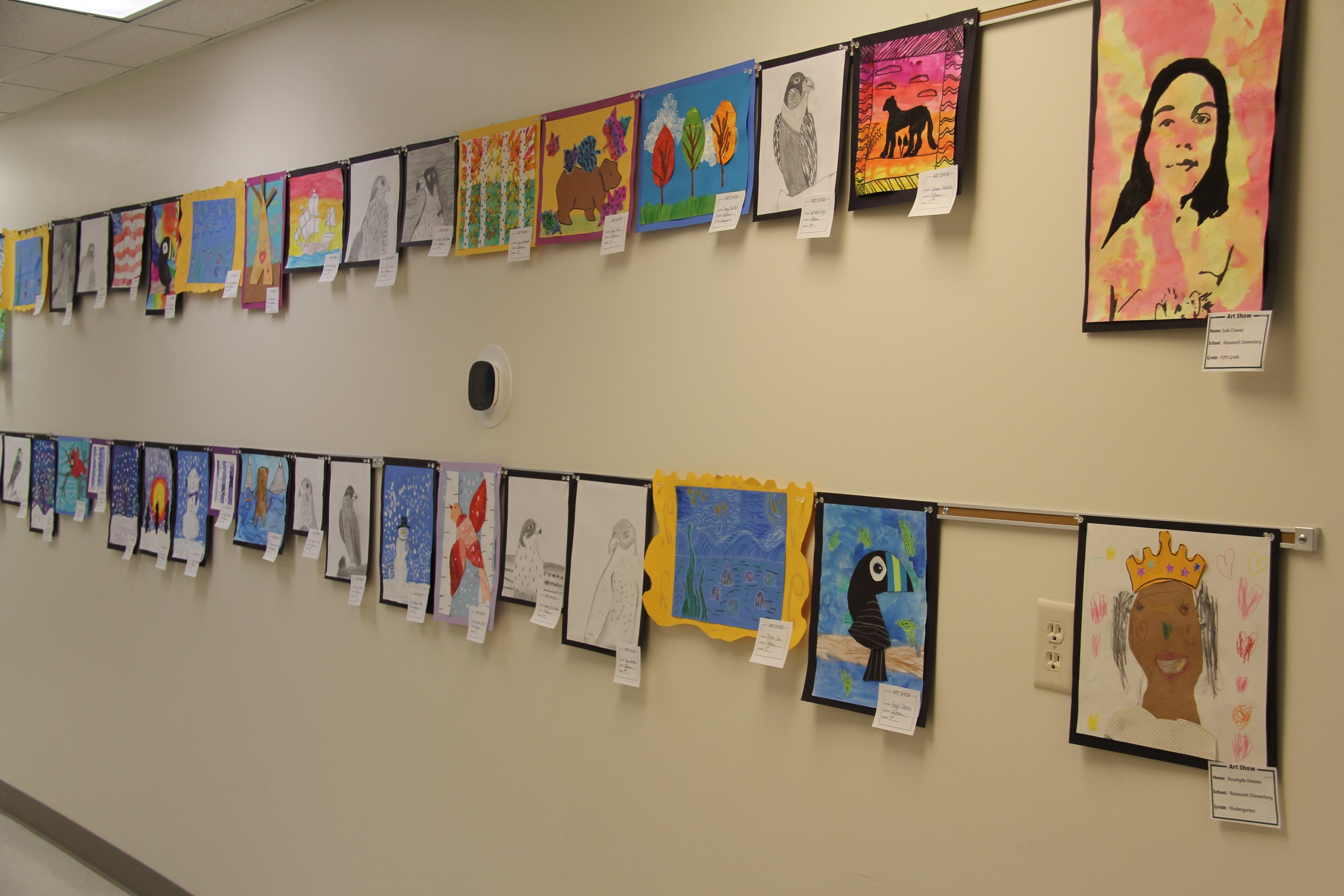 An assortment of student art lines hallways and a room. (Minnesota Prairie Roots copyrighted photo March 2023)