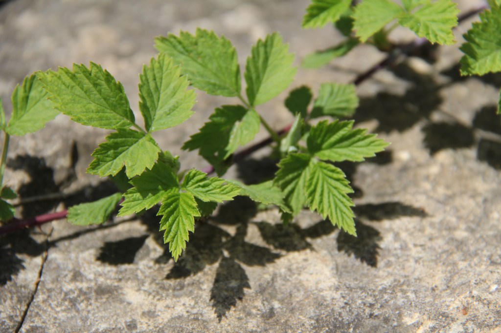 But mostly I see the shift of seasons in the greening of spring, of trees no longer bare, but spreading in a canopy of green. Of wild raspberries stretching across limestone wall to latch into the earth. Of hostas erupting.