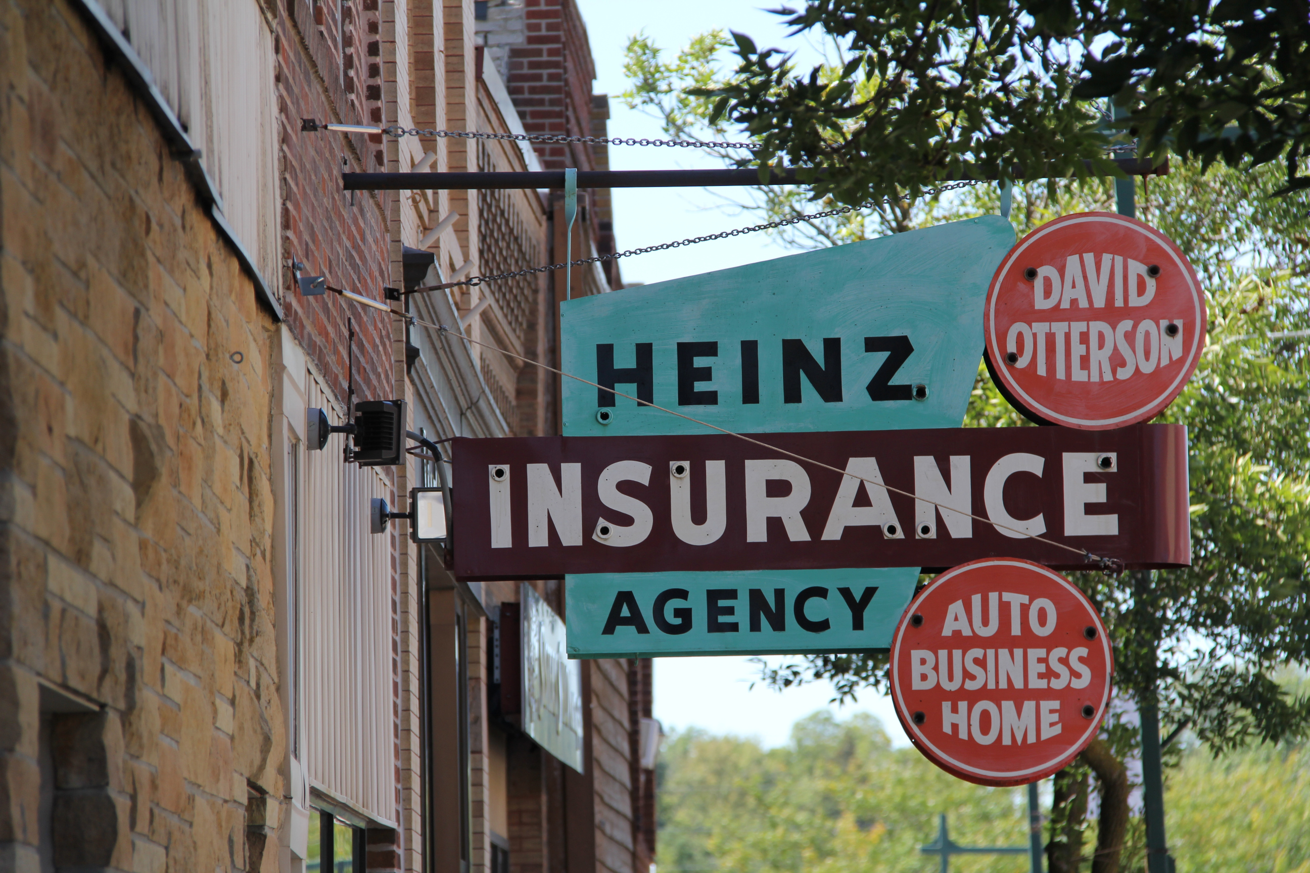 Among the many signs that drew my interest in Owatonna was this insurance agency sign. The bold colors and layered signage stood out. (Minnesota Prairie Roots copyrighted photo September 2024)