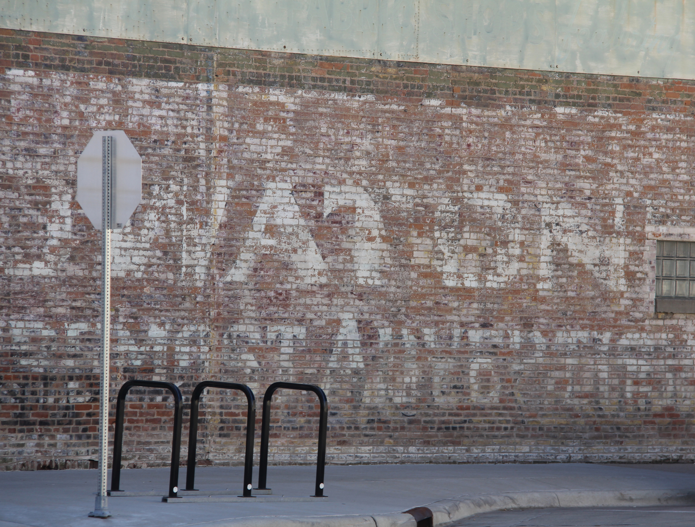 A mostly unreadable (at least to me) ghost sign. (Minnesota Prairie Roots copyrighted photo September 2024)