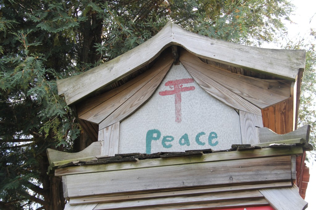 While the word PEACE was photographed from the back (because I couldn’t get a front angle), it holds the same meaning either way. (Minnesota Prairie Roots copyrighted photo September 2025)