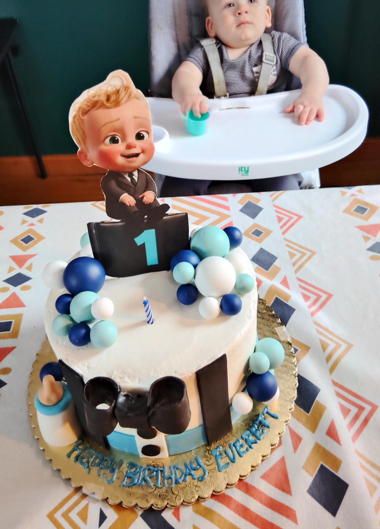 Here was this beautiful baby boy a year later strapped into his high chair fisting a thin slice of a custom made Boss Baby three-layer cake, all eyes on him. As we—parents, maternal grandparents, aunt, uncle, cousins and a family friend—gathered round to sing “Happy birthday,” Everett took it all in. And I felt the love that comes with celebrating someone you love deeply and widely.