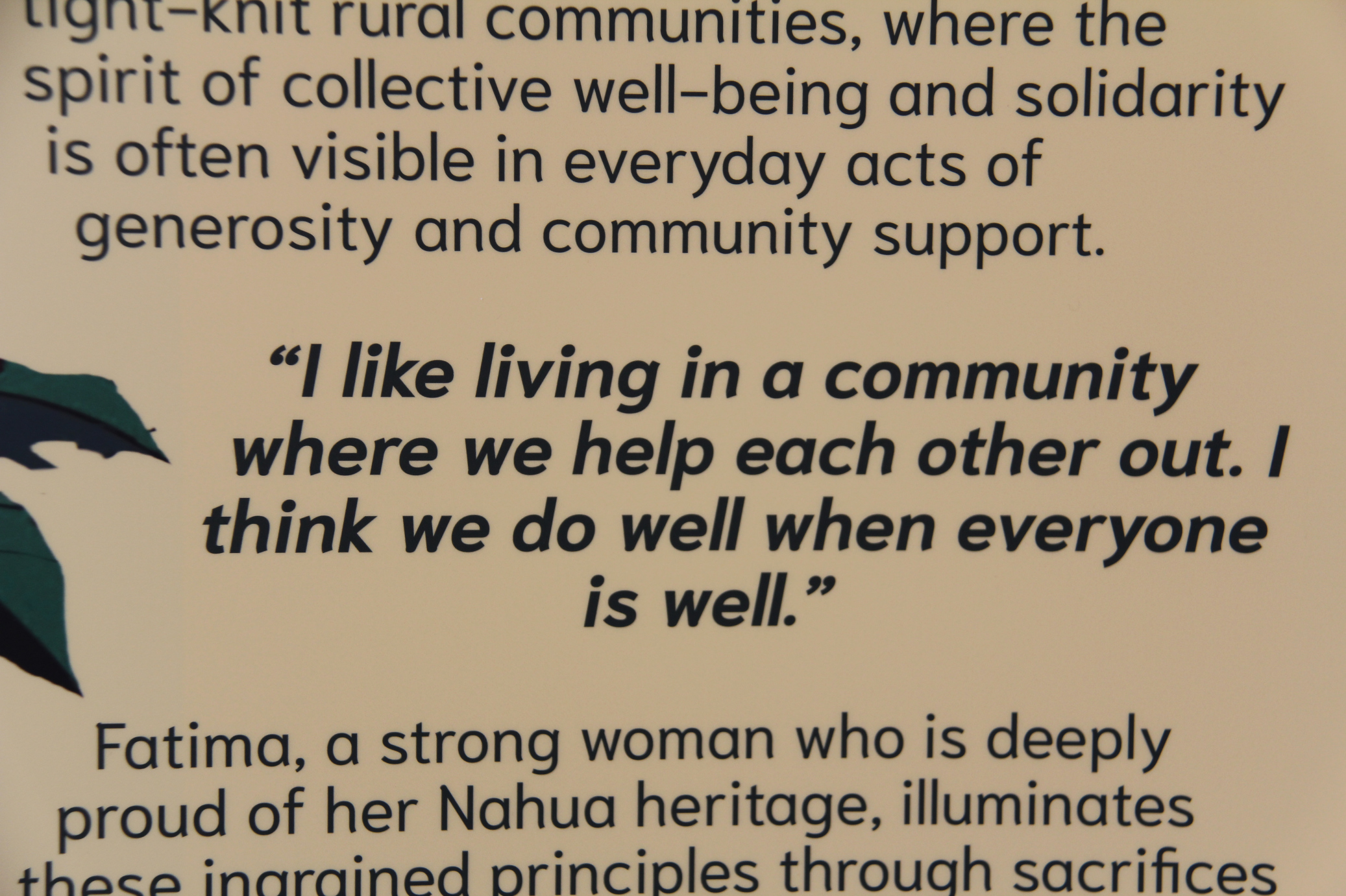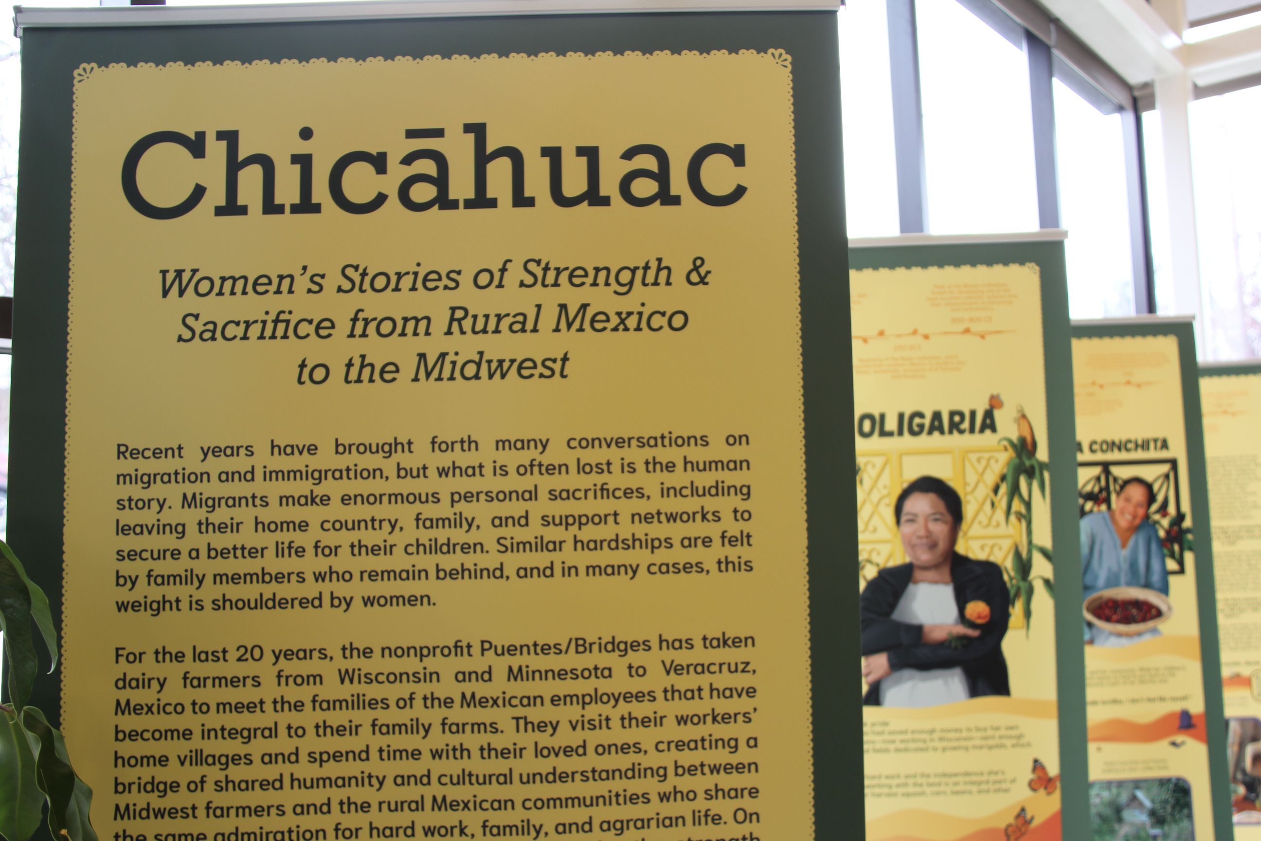 To that end, I feel grateful for “Chicāhuac: Women’s Stories of Strength & Sacrifice from Rural Mexico to the Midwest,” a traveling exhibit currently displayed at the Northfield Public Library. This bilingual exhibit shares the stories of six strong women: Concepciona, Doña Conchita, Fatima, Oligaria, Teresa and Veronica.