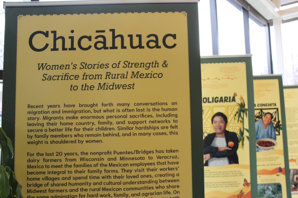 Many dairy farmers in both Minnesota and Wisconsin, including Rosenow, rely on Mexican migrants to milk and care for their cows. Two of the women profiled in the exhibit worked on U.S. dairy farms before returning home to Mexico.