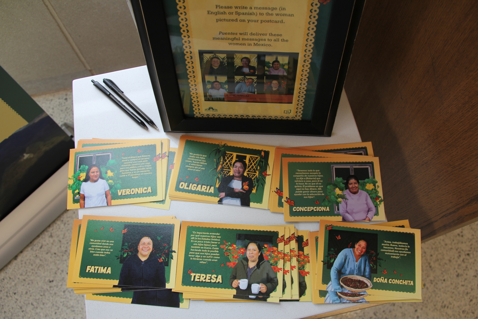 Those viewing the exhibit are invited to write messages to the women on individual postcards. Those will then be delivered by Puentes/Bridges to the women. (Minnesota Prairie Roots copyrighted photo January 2026)