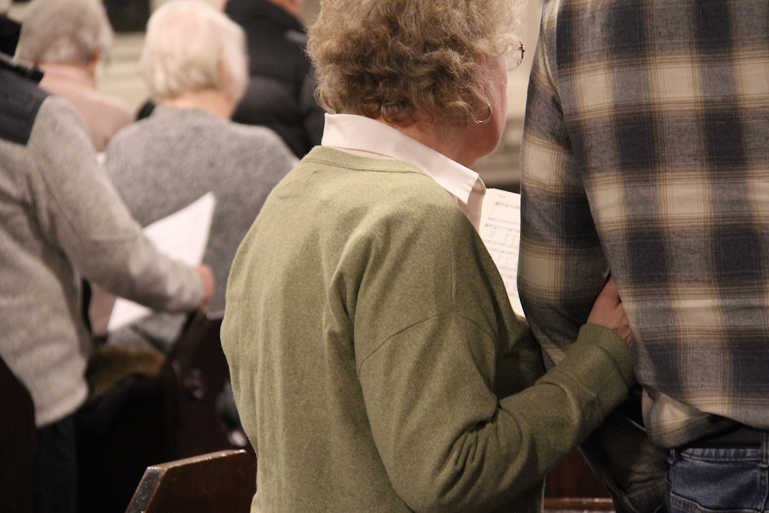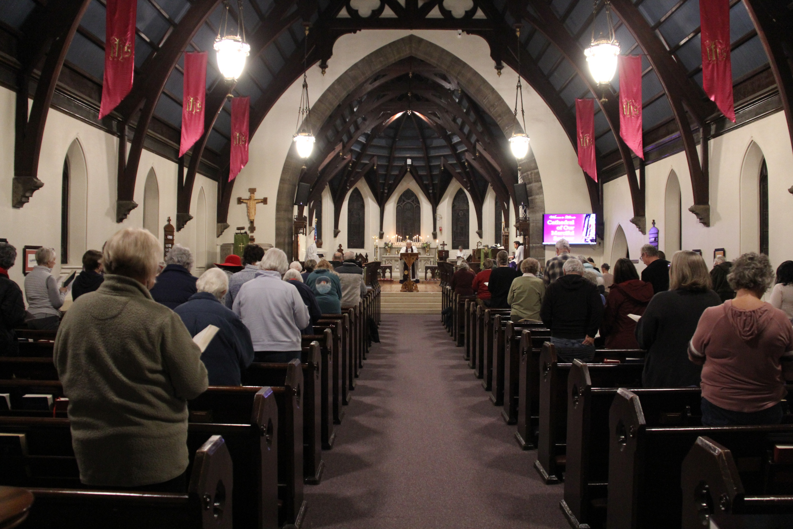People arrive for the 7 pm service inside the Cathedral of Our Merciful Saviour, Faribault. (Minnesota Prairie Roots copyrighted photo February 2026)