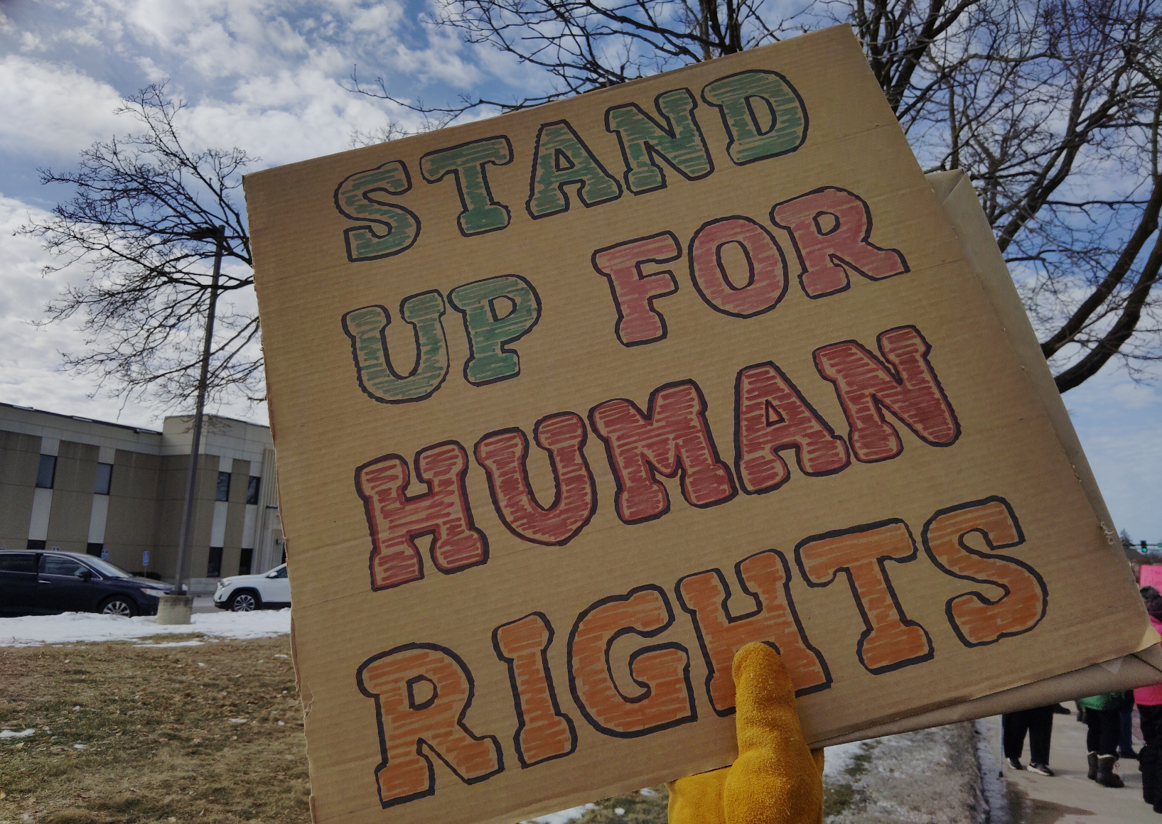I PULLED OUT my long johns, wool socks, stocking cap, mittens, hand warmers, winter boots and scarf. Then I pulled out my parka and my protest sign: STAND UP FOR HUMAN RIGHTS.