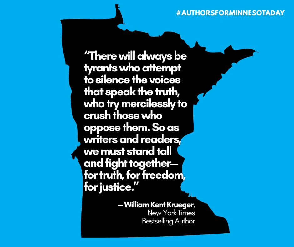 Among participating authors are Heid E. Erdrich, Allen Eskens, William Kent Krueger, Lorna Landvik, Bao Phi and many others, including Jess Lourey. She co-organized the event with Kristi Belcamino as “a coordinated act of civic support,” Lourey writes on her website. I’ve read many of Lourey’s bestselling mysteries and heard her speak at my local library. “Find your people and tell your truth,” she said at one of those appearances in emphasizing the value of community.