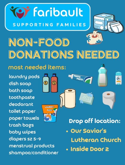 Our Savior’s Lutheran Church has been a collection site for food and non-food items during the current crisis. (Graphic sourced from the Our Savior’s Facebook page)