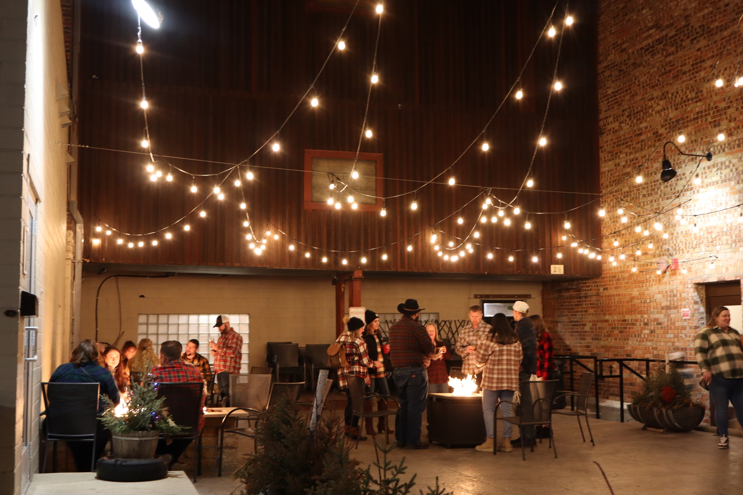 Flannel attendees gather on the patio between the distillery and Corks & Pints. (Photo credit: Faribault Area Chamber of Commerce & Tourism)