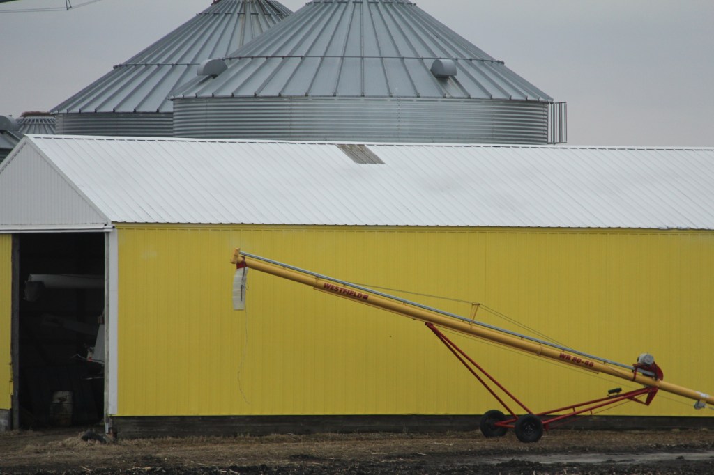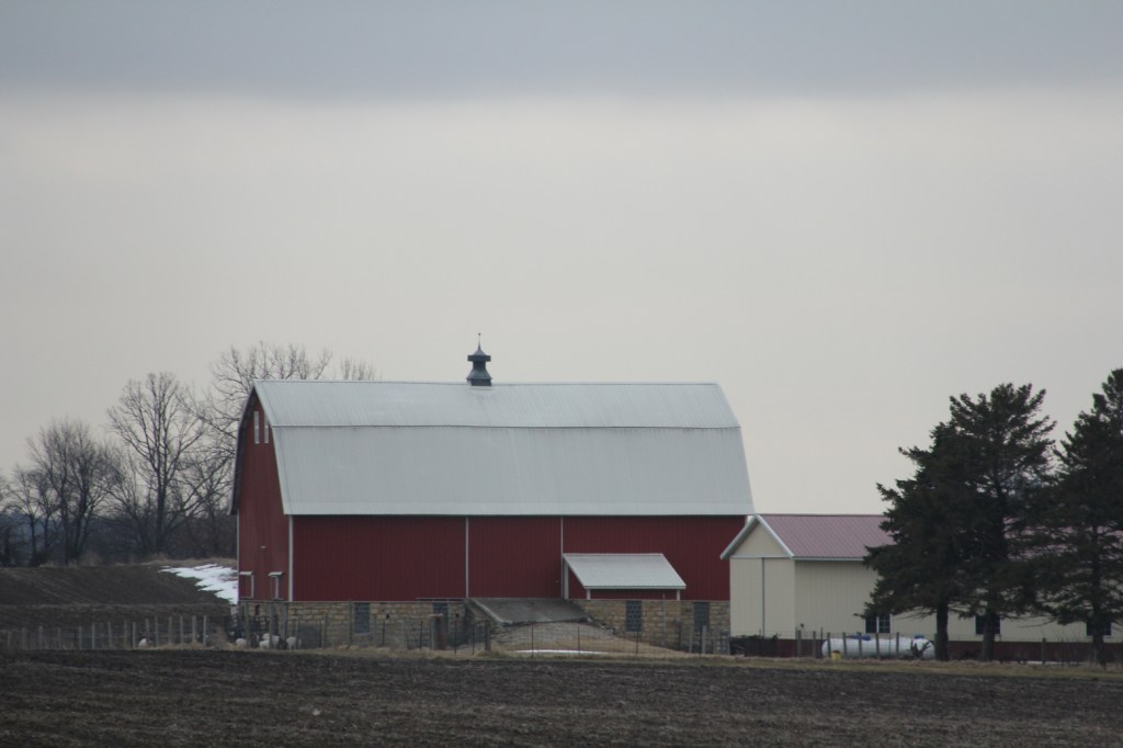 The brightest farm outbuilding I’ve ever seen is this one along Minnesota State Highway 60 between Faribault and Kenyon. (Minnesota Prairie Roots copyrighted photo March 2026)