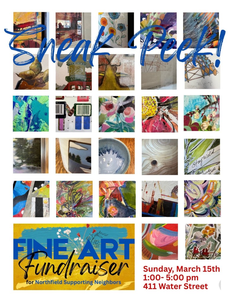 From 1-5 p.m. this Sunday, March 15, the Northfield Arts Guild is hosting a Fine Art Fundraiser for Northfield Supporting Neighbors. Art created during February swap art sessions will be sold at the Guild’s Water Street Studios, 411 Water St. S. in downtown Northfield. One hundred percent of sale proceeds will go to Northfield Supporting Neighbors.