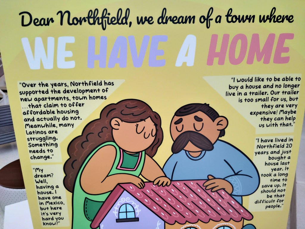 Among the results was a poster campaign, “Dear Northfield,” by Latino artist Rocky Casillas Aguirre. He interviewed 100 Latino residents, asking this question: “If you could write a letter to the people who govern our city, what would you tell them?”