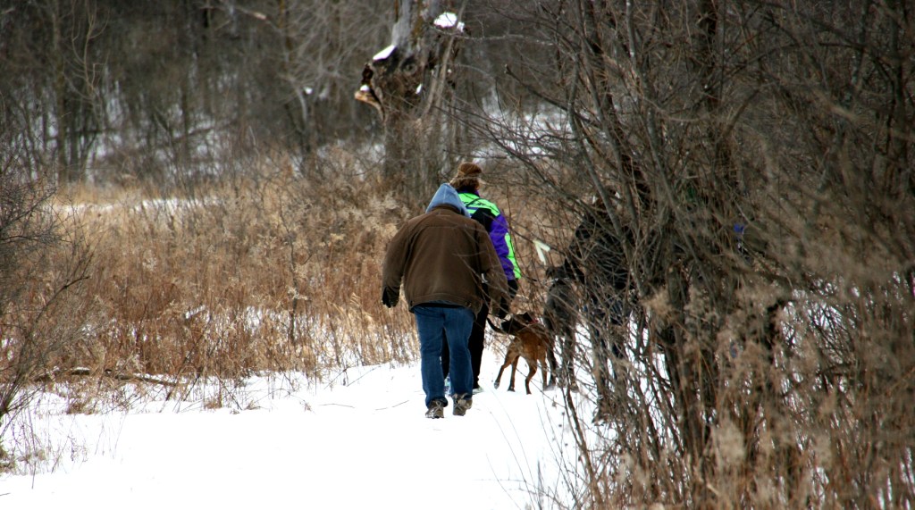 Walking through snowy woods on a Sunday afternoon » Nature Center, 1 walking the dogs