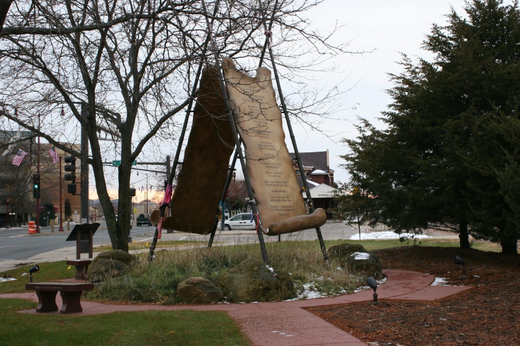 “Forgive Everyone Everything” themes this art in Reconciliation Park. Names of the 38 Dakota who were hung at this site in 1862 are inscribed thereon along with a prayer.