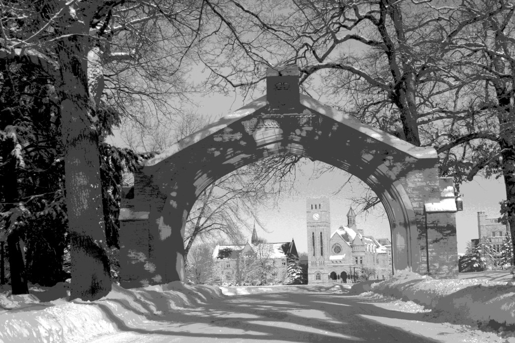 An entrance arch frames Shattuck-St. Mary’s School on Faribault’s east side. Go through this arch to find the chapel. The sports complex is on the other side of campus off Shumway Avenue. (Minnesota Prairie Roots copyrighted file photo)