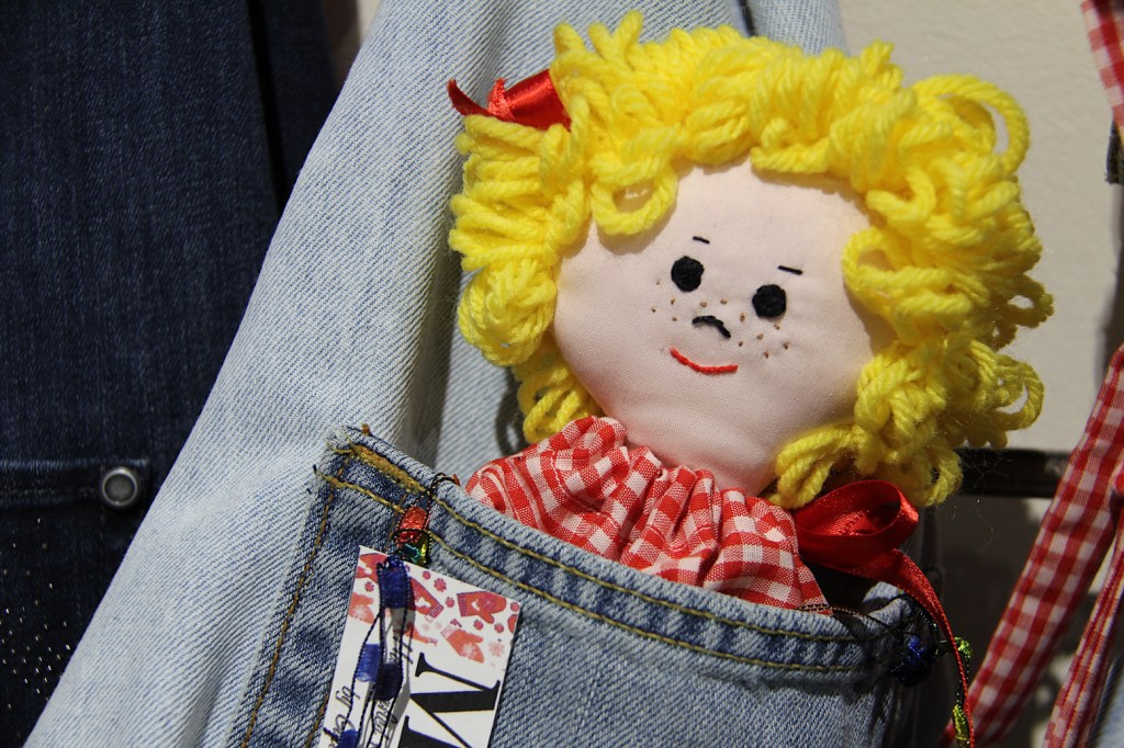 Gail Kielmeyer crafted this doll, aprons and more, tagged as Minnesota Made. (Minnesota Prairie Roots copyrighted photo December 2025)