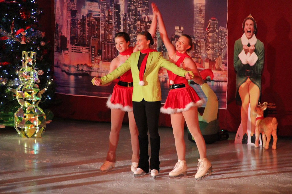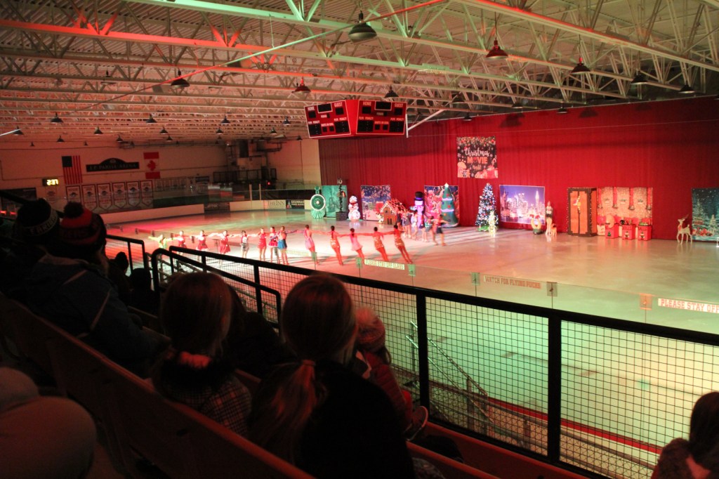 AGAINST A FESTIVE BACKDROP of The Polar Express locomotive, a gingerbread house, Frosty the Snowman, a Christmas tree and more, figure skaters at Shattuck-St. Mary’s School performed their annual holiday show on ice, “Lights, Camera, Skates! Christmas at the Cinema,” before an appreciative audience on December 13. And I was there, as I have been for many past figure skating shows that are as much an opportunity for skaters to perform as an early Christmas gift to the community.
