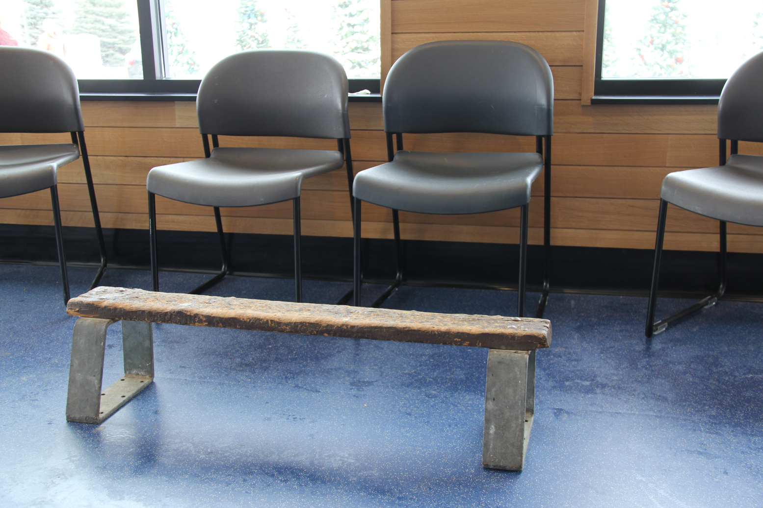 In the warming room, which opens to the rink, skaters can sit down to don or remove skates. (Minnesota Prairie Roots copyrighted photo December 2025)
