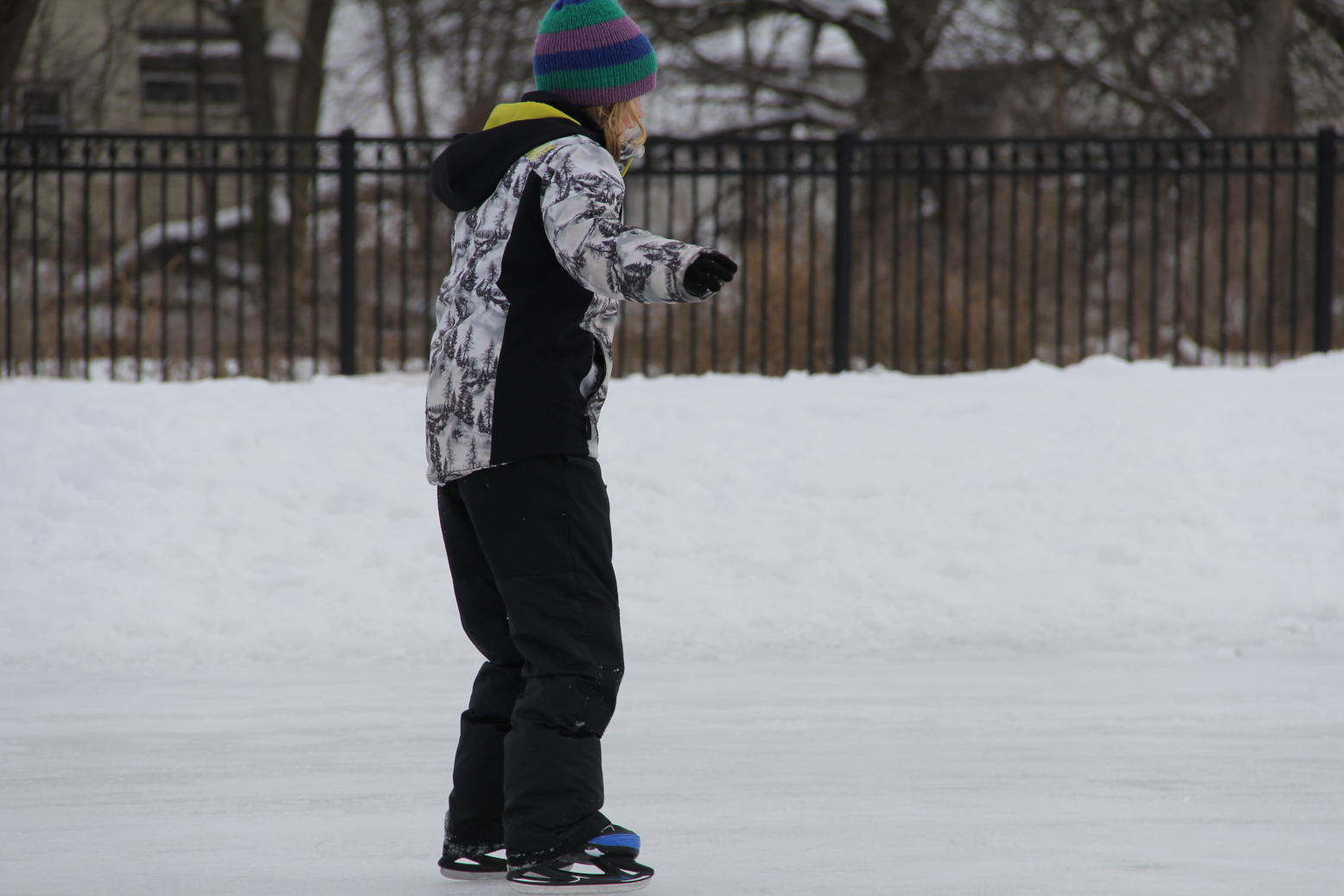 Gliding across the ice at Viaduct Park. (Minnesota Prairie Roots copyrighted photo December 2025)