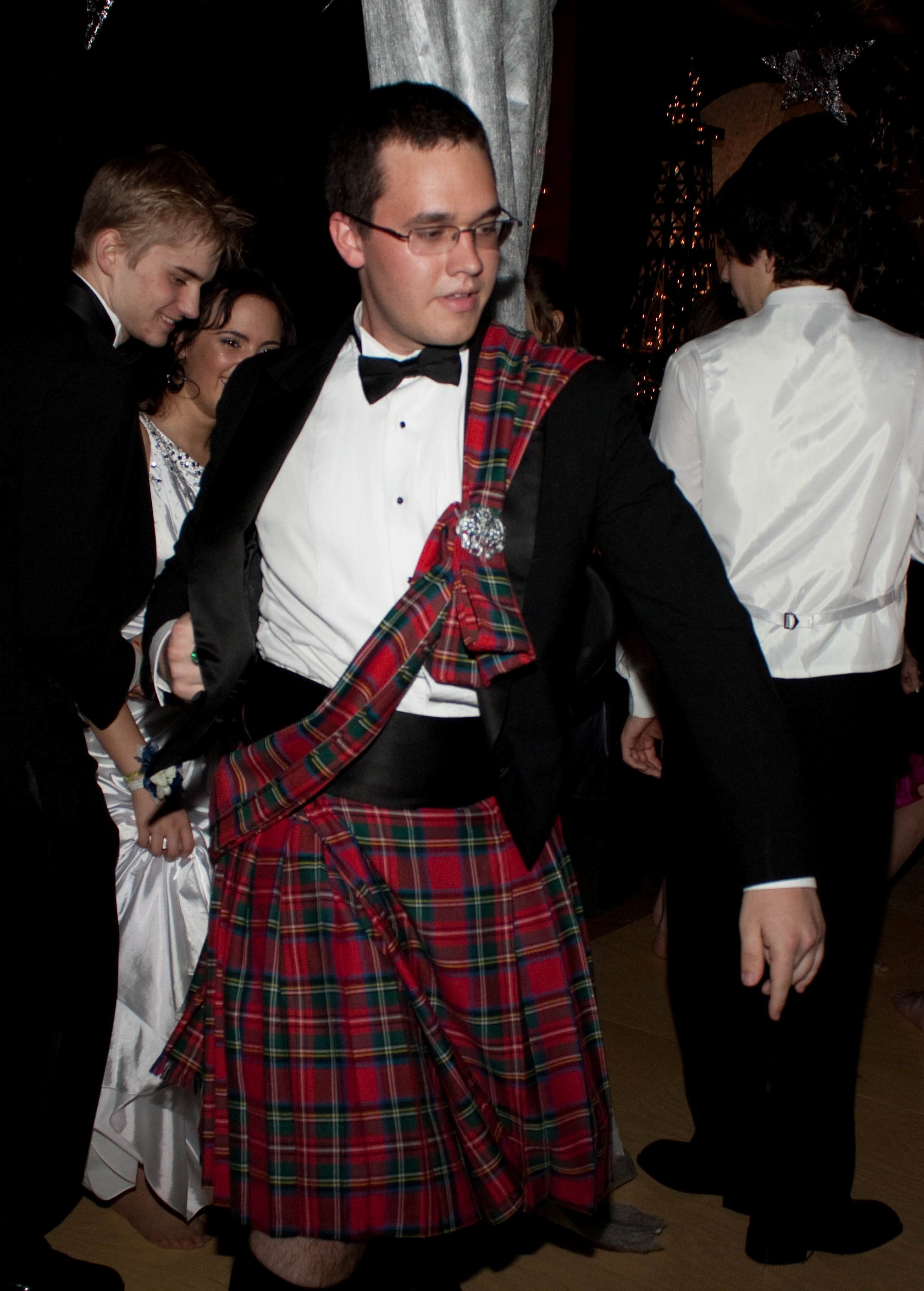 Sean dances the night away in his homemade kilt at a 70s disco style prom in Wasilla, Alaska.