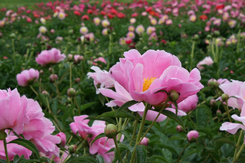 On this June afternoon, the wind blew fierce, whipping lose ends of my hair, dipping peony stems, playing a refrain inside my head of “summer breeze makes me feel fine” (Seals & Croft 1972). I felt mighty fine in this peaceful place among blooming peonies. Some buds remained clamped tight, but likely have opened in the days since my visit.