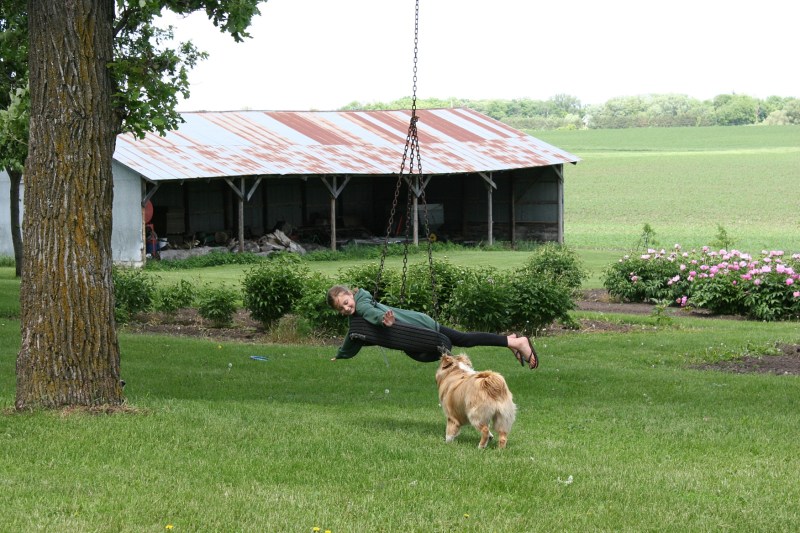 This tire swing, with its chain grown into a tree branch, adds simple country charm to the yard and peony gardens.