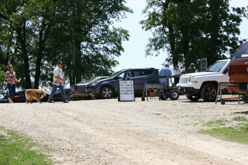 Rascal helps Bruce and Dawn Rohl at the check-out/peony ordering station.