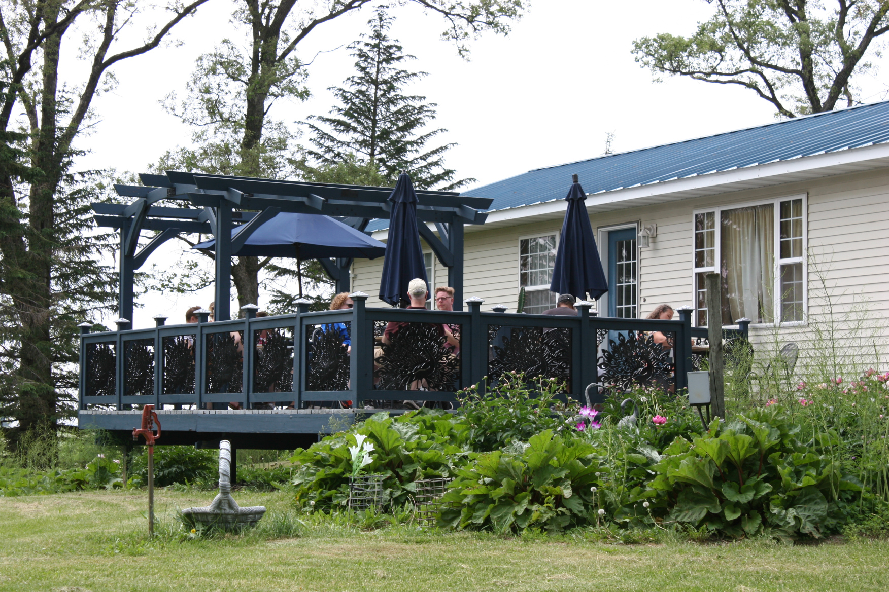 Here Rascal the dog welcomes guests up the gravel driveway with raucous barking. I’d barely opened the van door when Rascal ran up and I reached down to pet him. Later I saw Princess the cat weaving through the peonies.