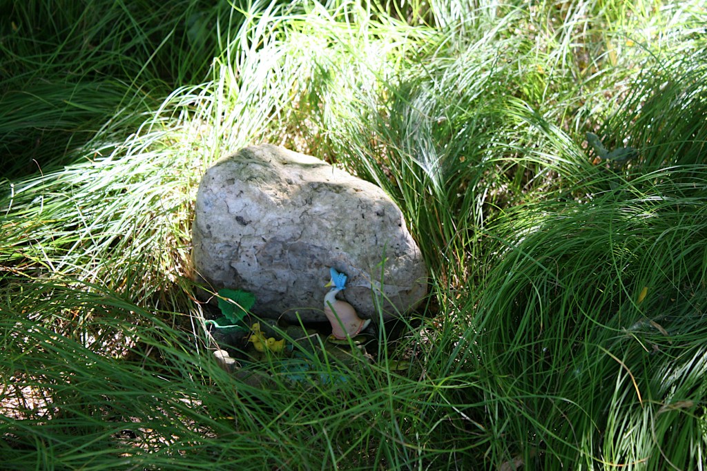 When I looked closely, I discovered Mother Goose and family in the spirals of grass next to a rock.