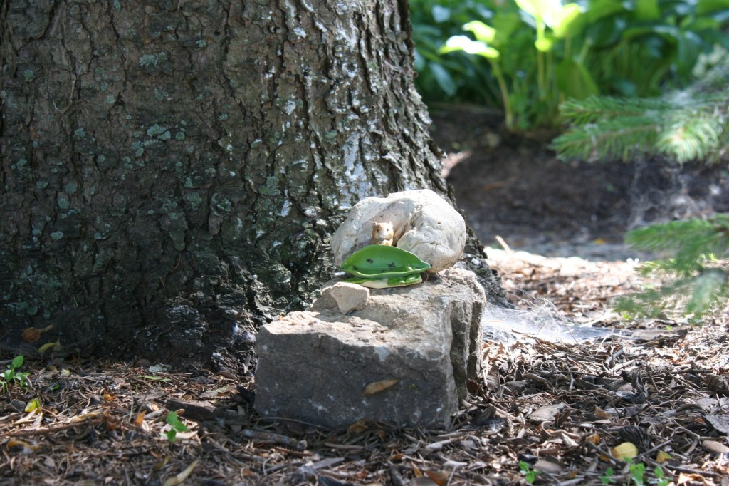 Together Randy and I scanned the yard, spotting these magical scenes among spiraling prairie dropseed grass, at the base of trees, upon and next to rocks. For a few moments I immersed myself in finding and then photographing the mini garden art, all the while almost squealing with delight.