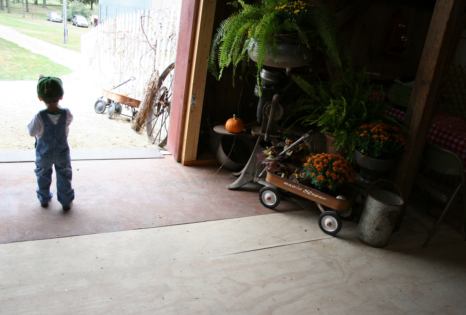 As this boy pulled a wagon up the incline toward the hayloft, I wondered if he would climb aboard for a wild ride down. Instead, he released the wagon. I would have careened down, gripping the handle.