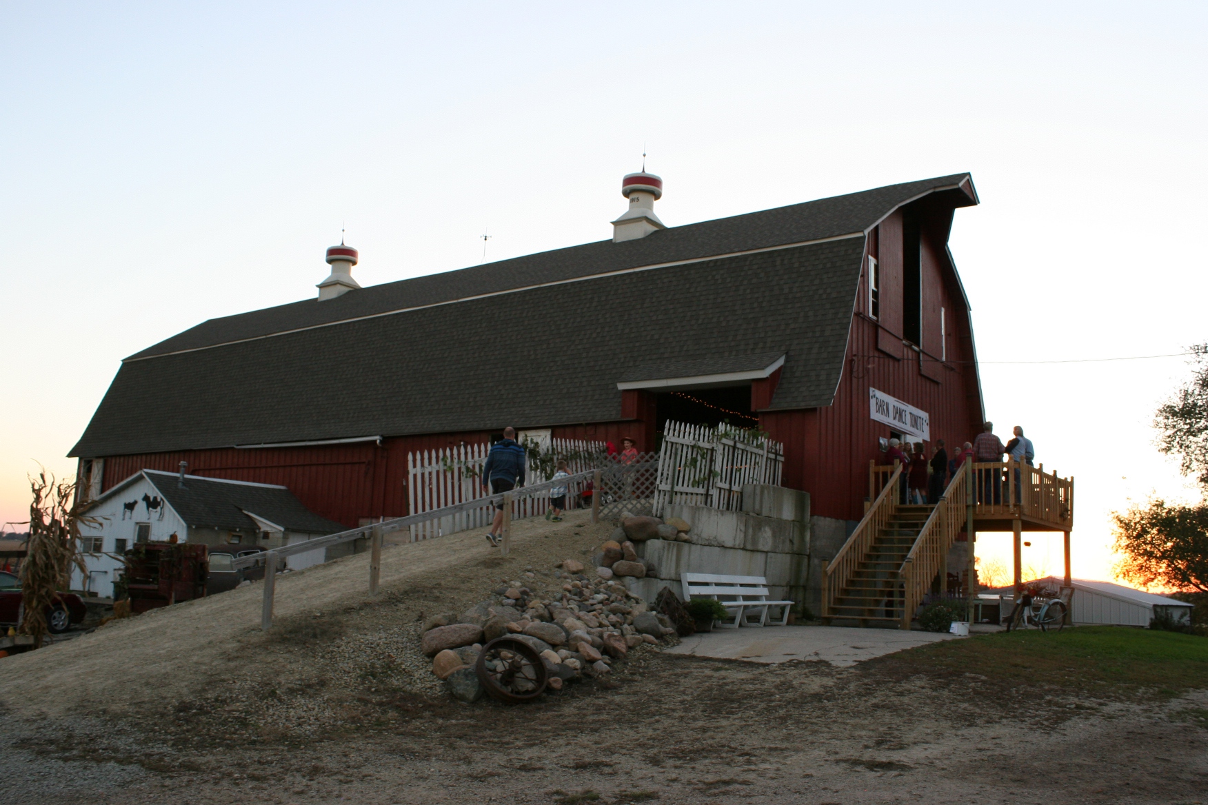 The sun sets behind John and Debbie Becker’s rural Dundas, Minnesota, barn on the evening of their September 26 barn dance.