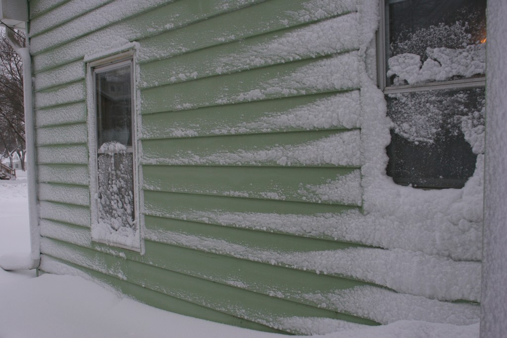 We remained cognizant of ice underneath. Randy advised caution near the down spout and I pointed out a patch of black ice where the concrete dips. In the end, we did the best we could and called it done…until the next winter storm rolls into southern Minnesota.