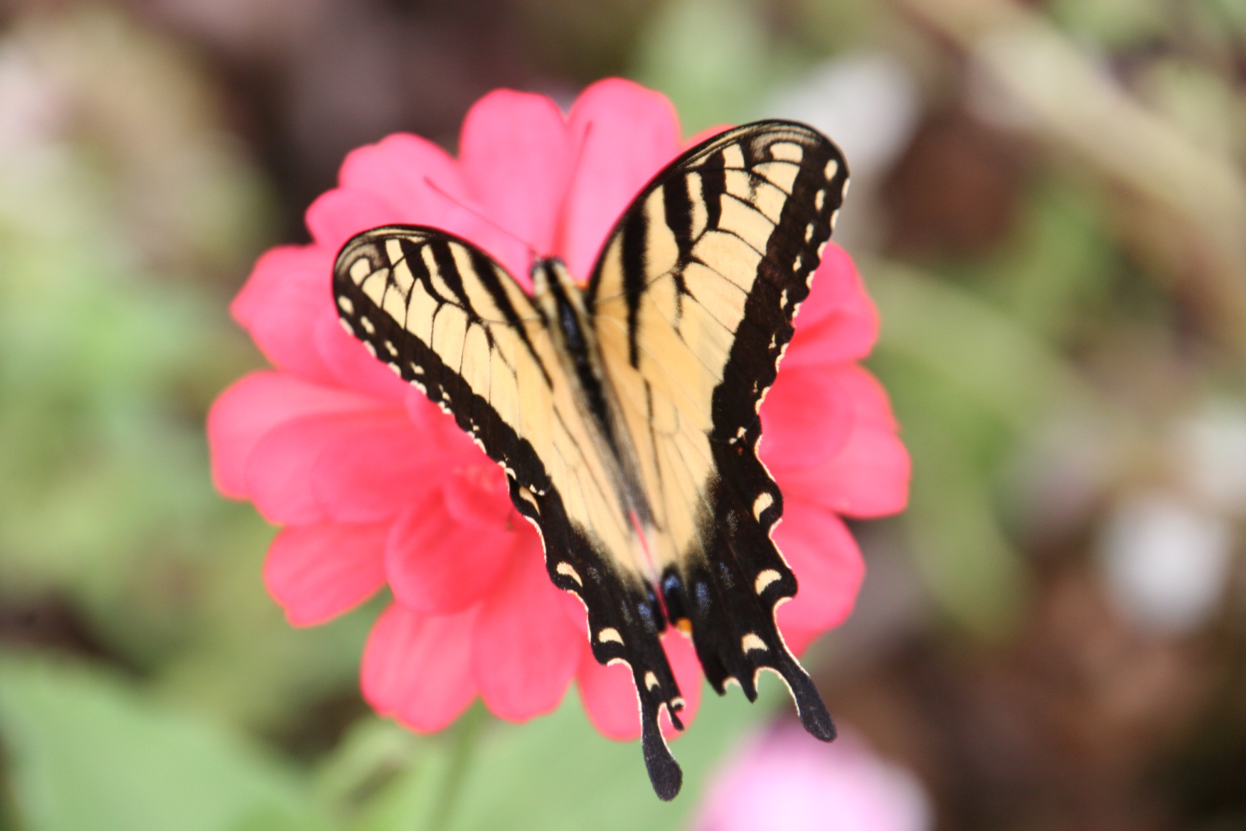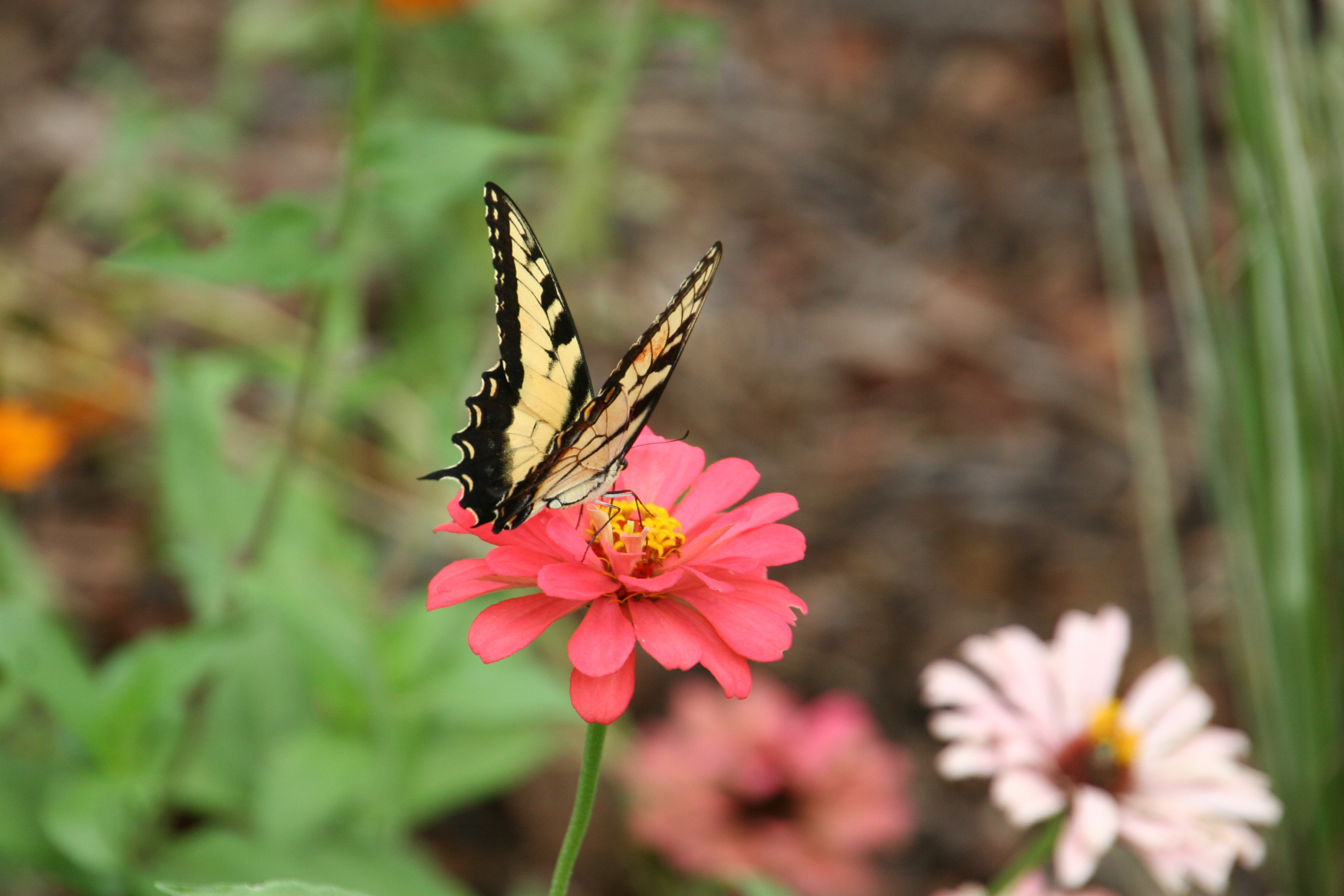 Patterned butterflies flit, then pause to unfurl proboscis and drink of sweet floral nectar.