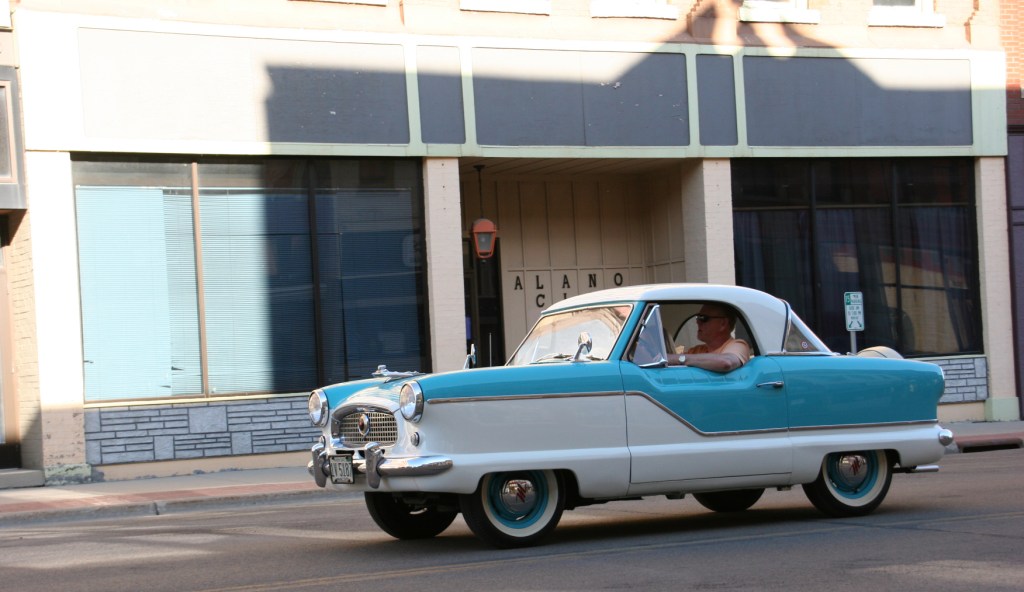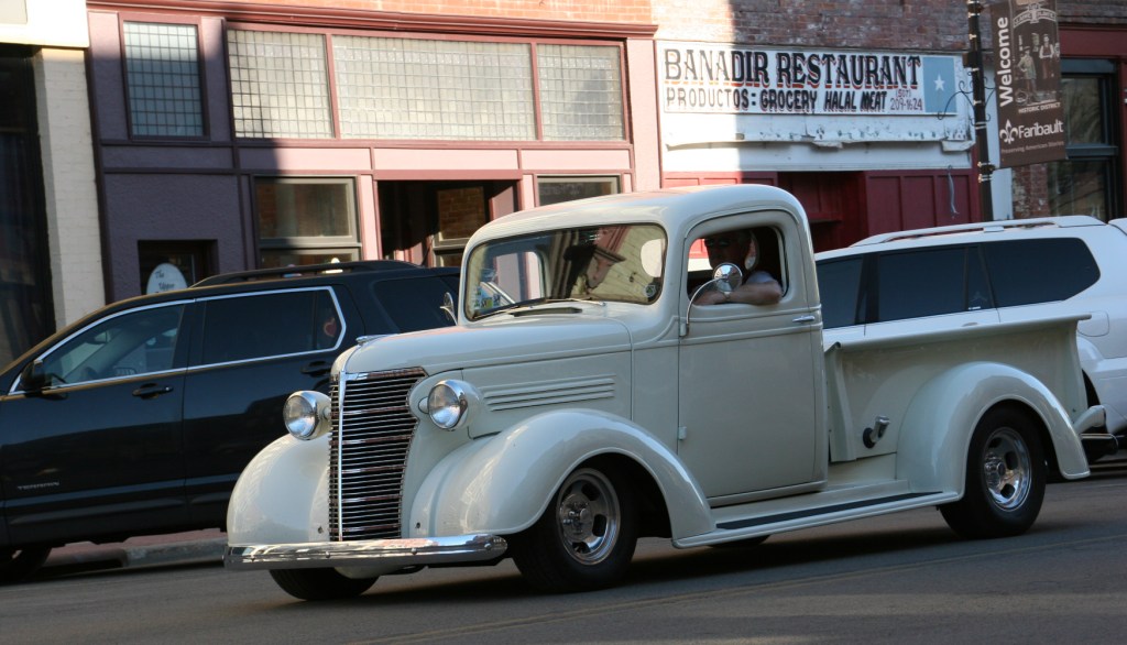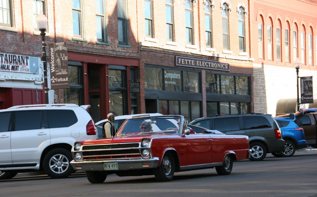 And then there’s pride in ownership showcased in shiny, spotless vehicles waxed to perfection. Flawless. Brian Boelke of Mazeppa polished his 1948 Chrysler to mirror image shine. I was fascinated by the reflection of historic buildings curving across the hood and sides of his black car. Abstract art. Beautiful. I wonder if others noticed.