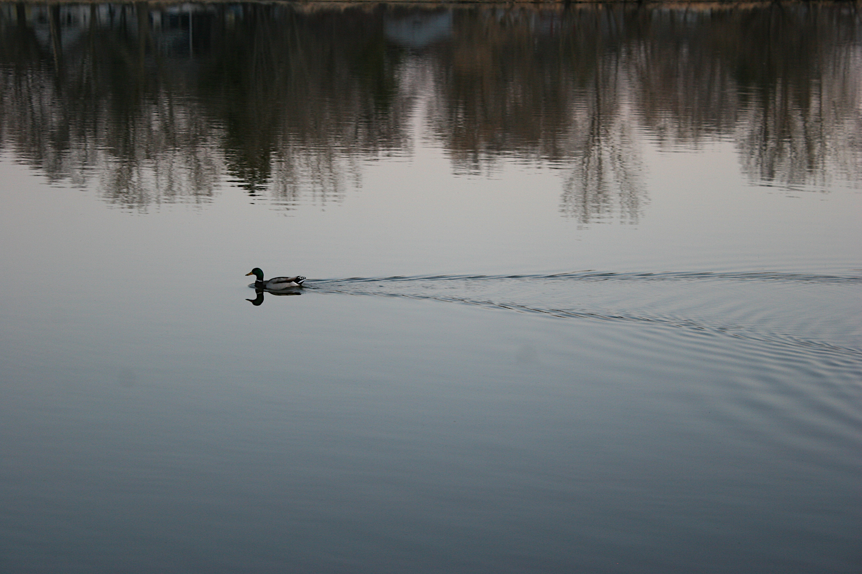 I still had one more place to stop—the spot along the riverbank where the ducks hang out. I was hoping to see the pure white ducks I’ve previously seen here. They were there along with the mallards, the iridescent green of the drakes’ heads shimmering in the late morning light.