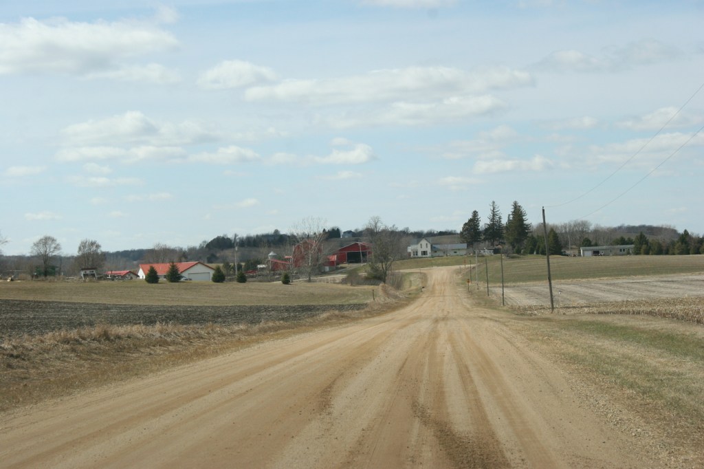 I like nothing better than to follow gravel roads that twist through the countryside. The slower pace connects me to the land, to the lovely scenes unfolding before me. Dust clouds trail vehicles rumbling along sometimes washboard surfaces. Combines kick up dust, too, as farmers harvest corn and soybeans, grain trucks parked nearby to hold the bounty.