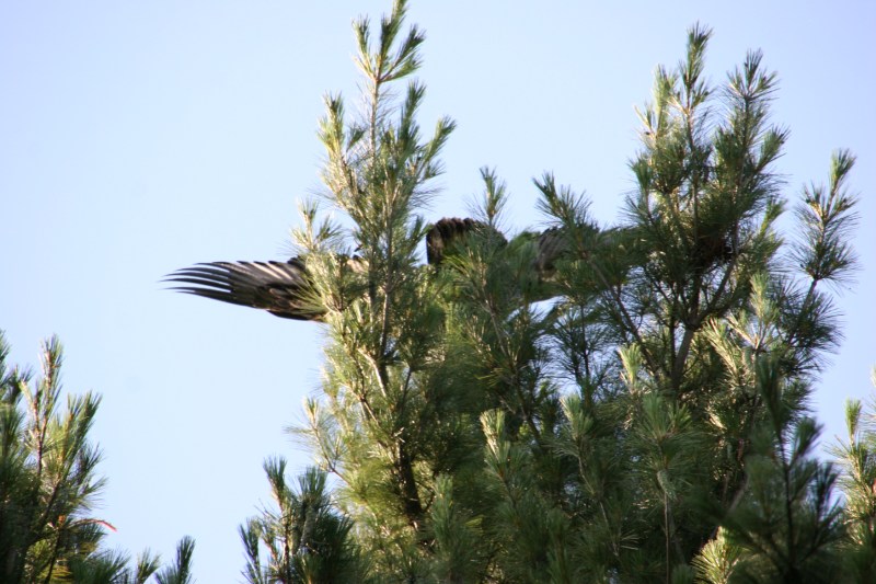 The only photo I got of a parent eagle. This one was sitting in a tree next to the lake, a favorite perch, Jon said.