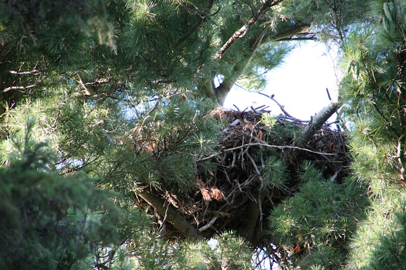 It amazes me that these majestic and massive birds can stay so well hidden. If my brother-in-law, Jon, had not pointed out the nest in the top of the pine in the fork of the driveway, I doubt I would have spotted it, home to two adult and two juvenile eagles.